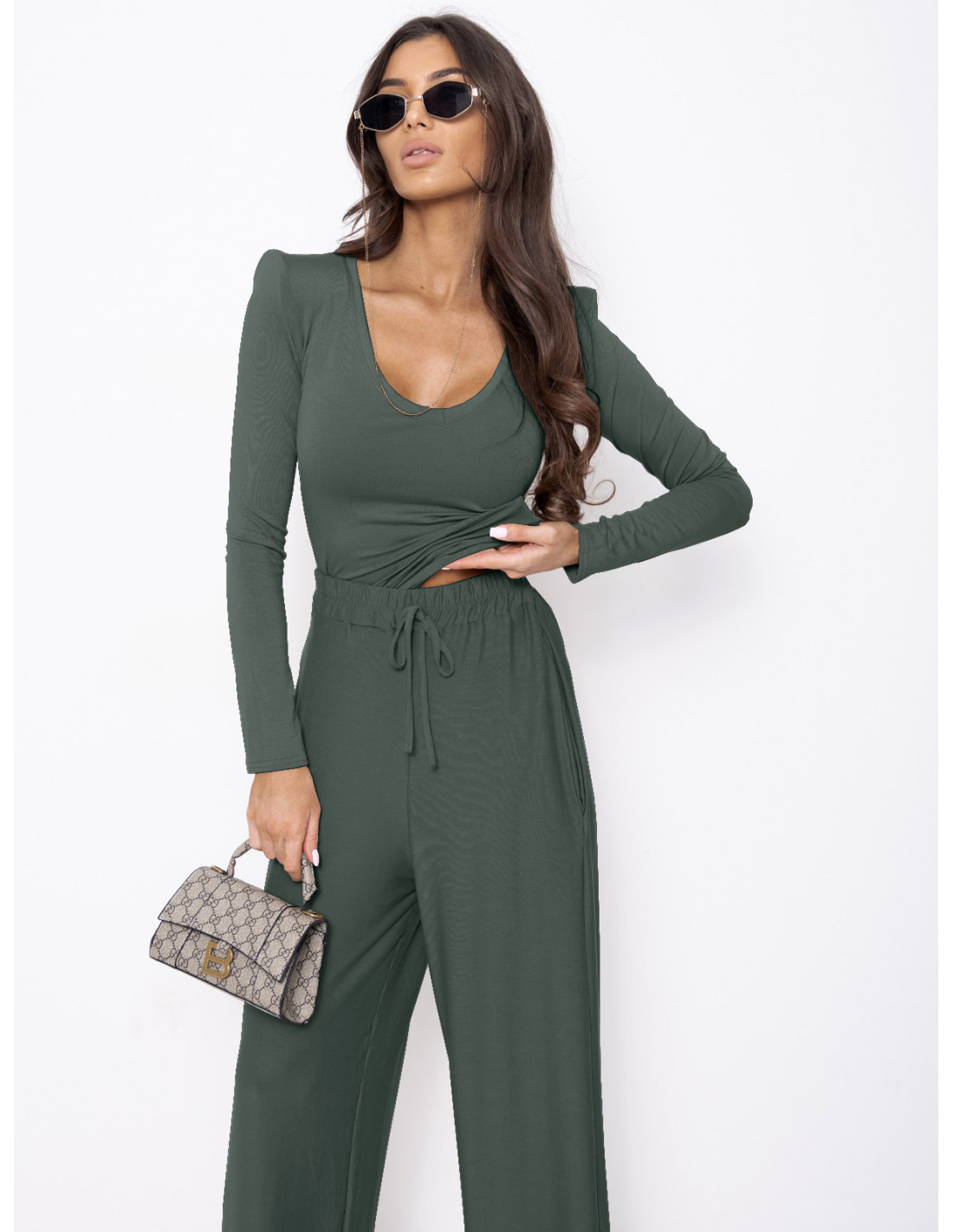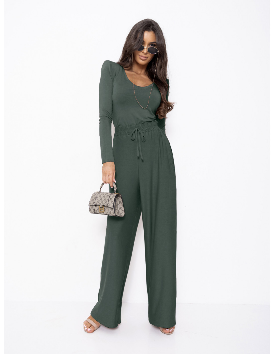 Komplet z wiskozy bluzka i szerokie spodnie AGRA - khaki