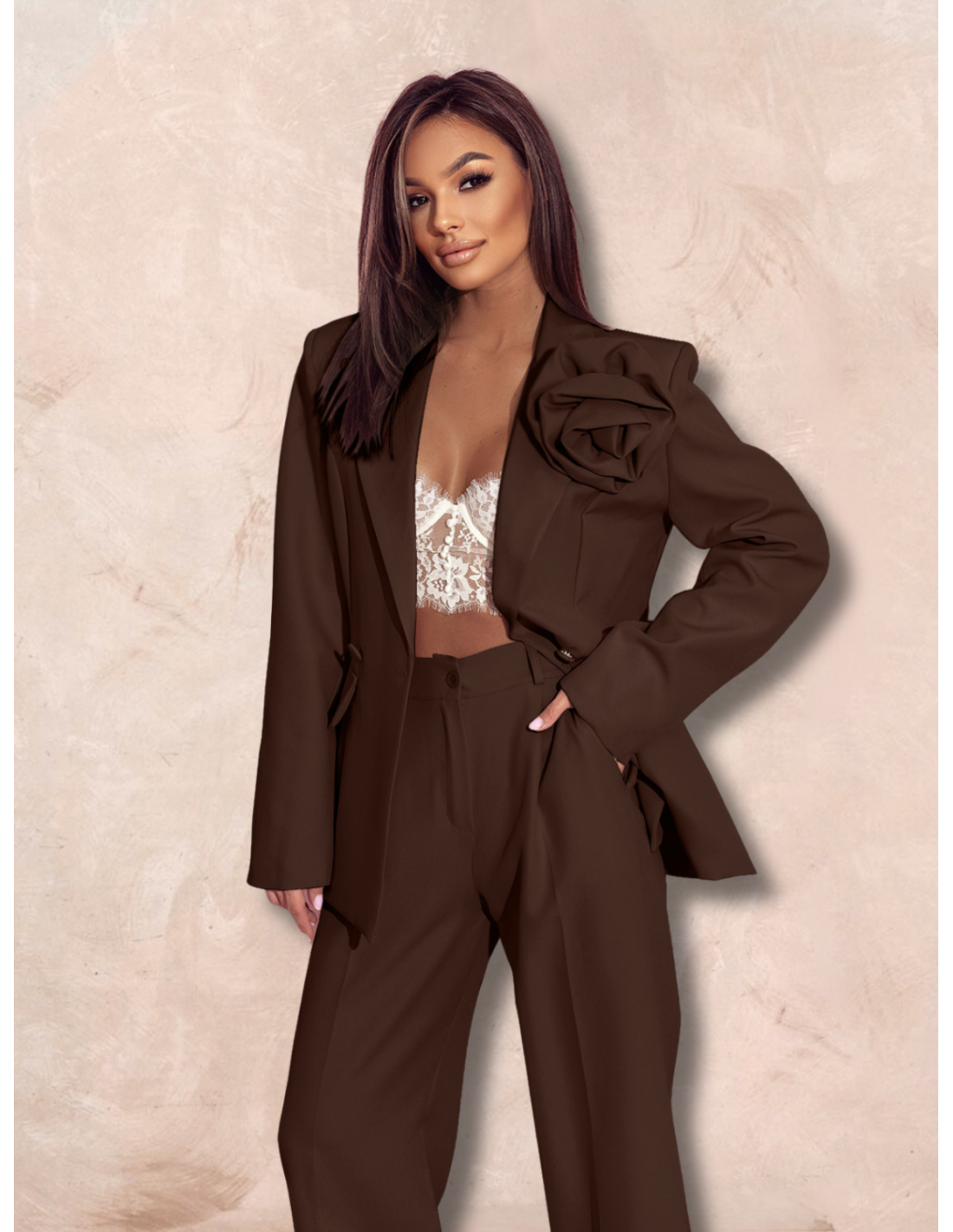 Ten garnitur w kolorze czekoladowym to więcej niż ubranie – to wyraz Twojej indywidualności i pewności siebie.