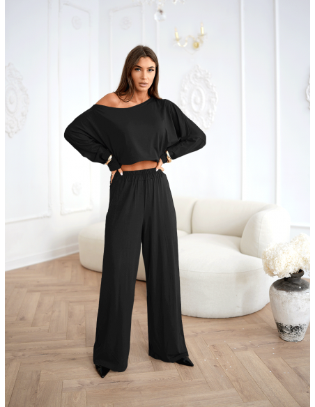 Komplet z wiskozy bluzka i szerokie spodnie SATON - czarny