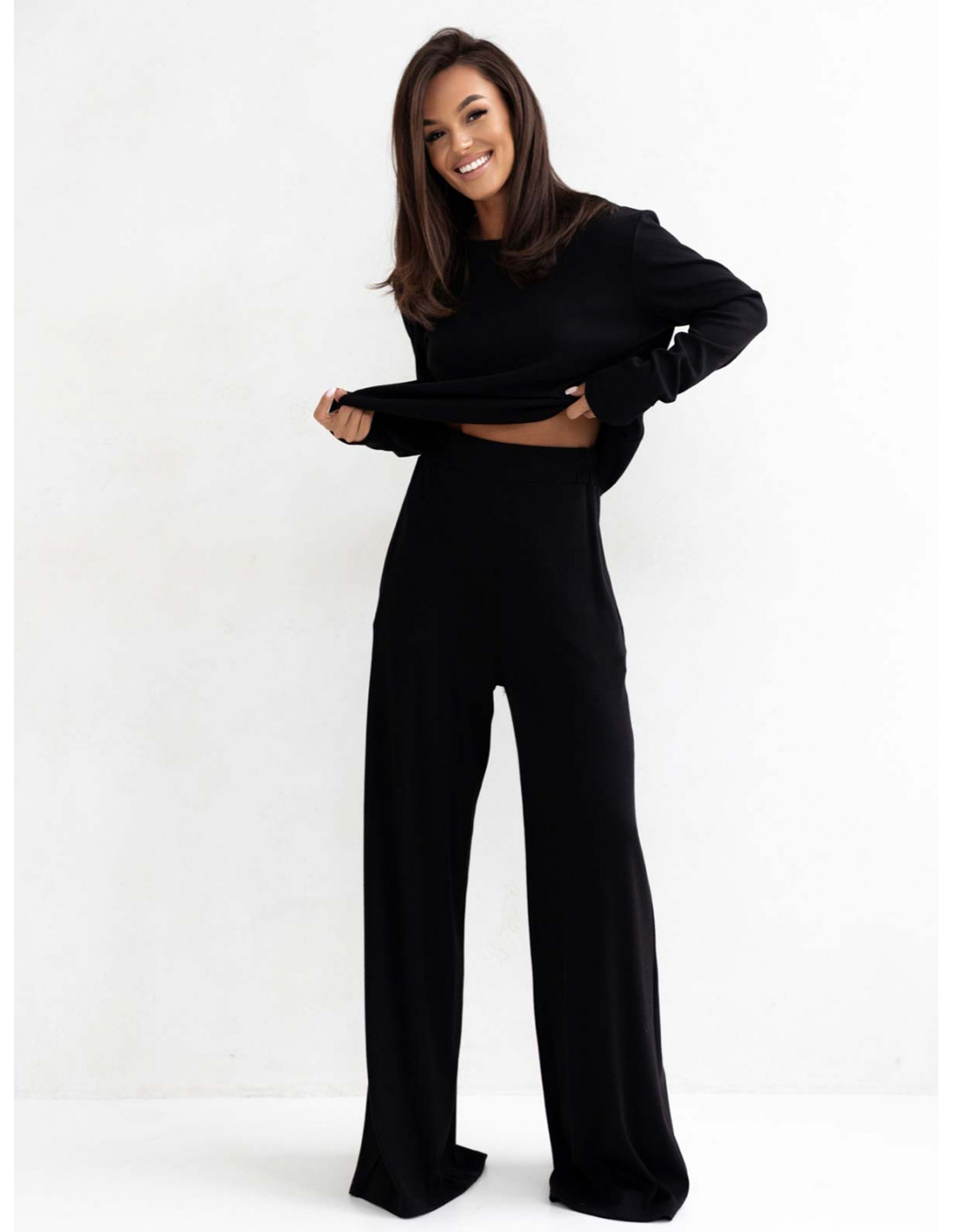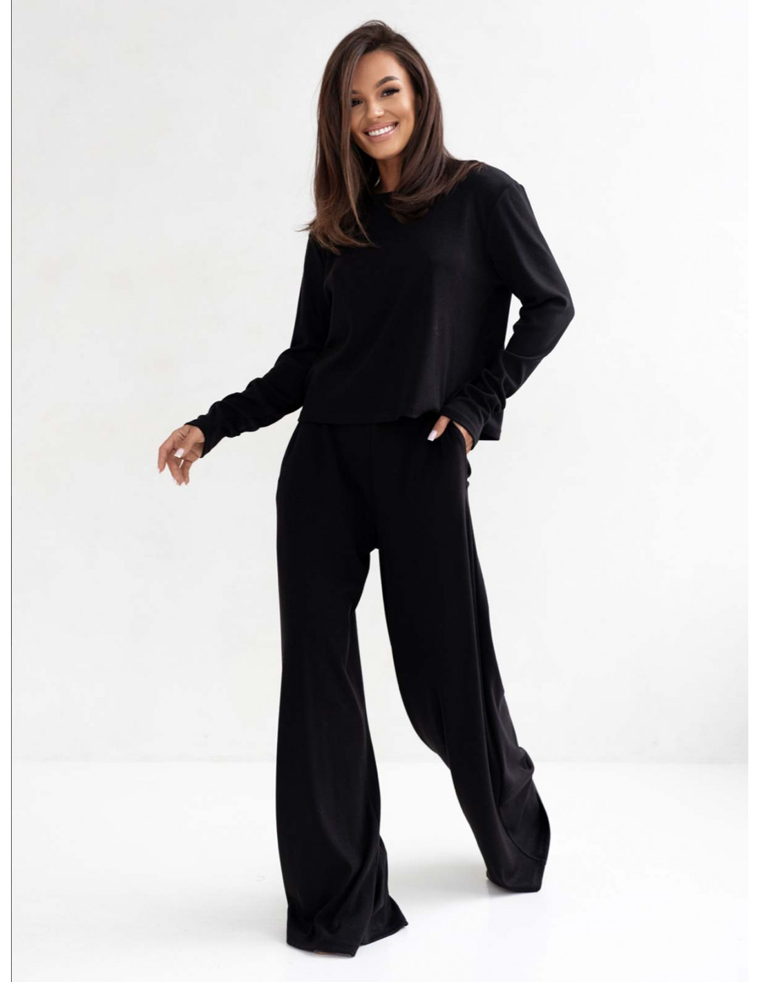 Wiskozowy komplet bluzka i szerokie spodnie RINO - czarny
