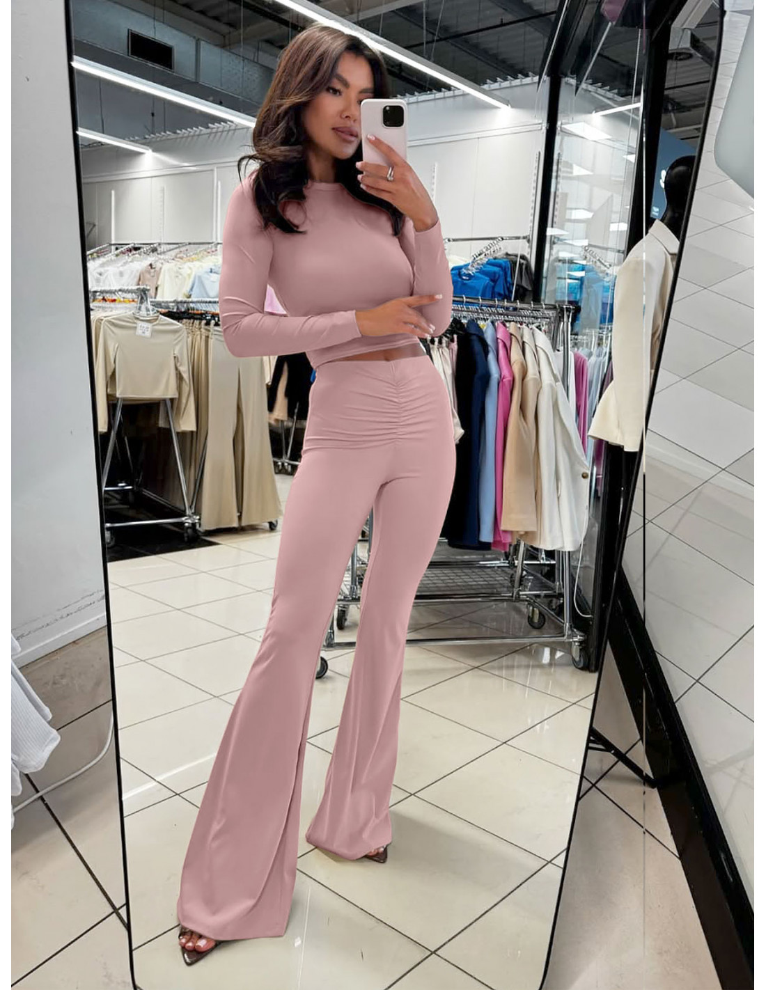 WP Komplet dopasowany bluzka i szerokie spodnie - brudny róż