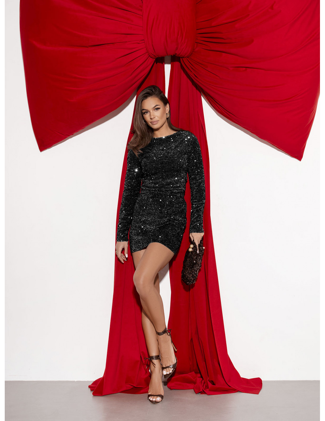 Cekinowy komplet bluzka i spódniczka mini HATUM - czarny