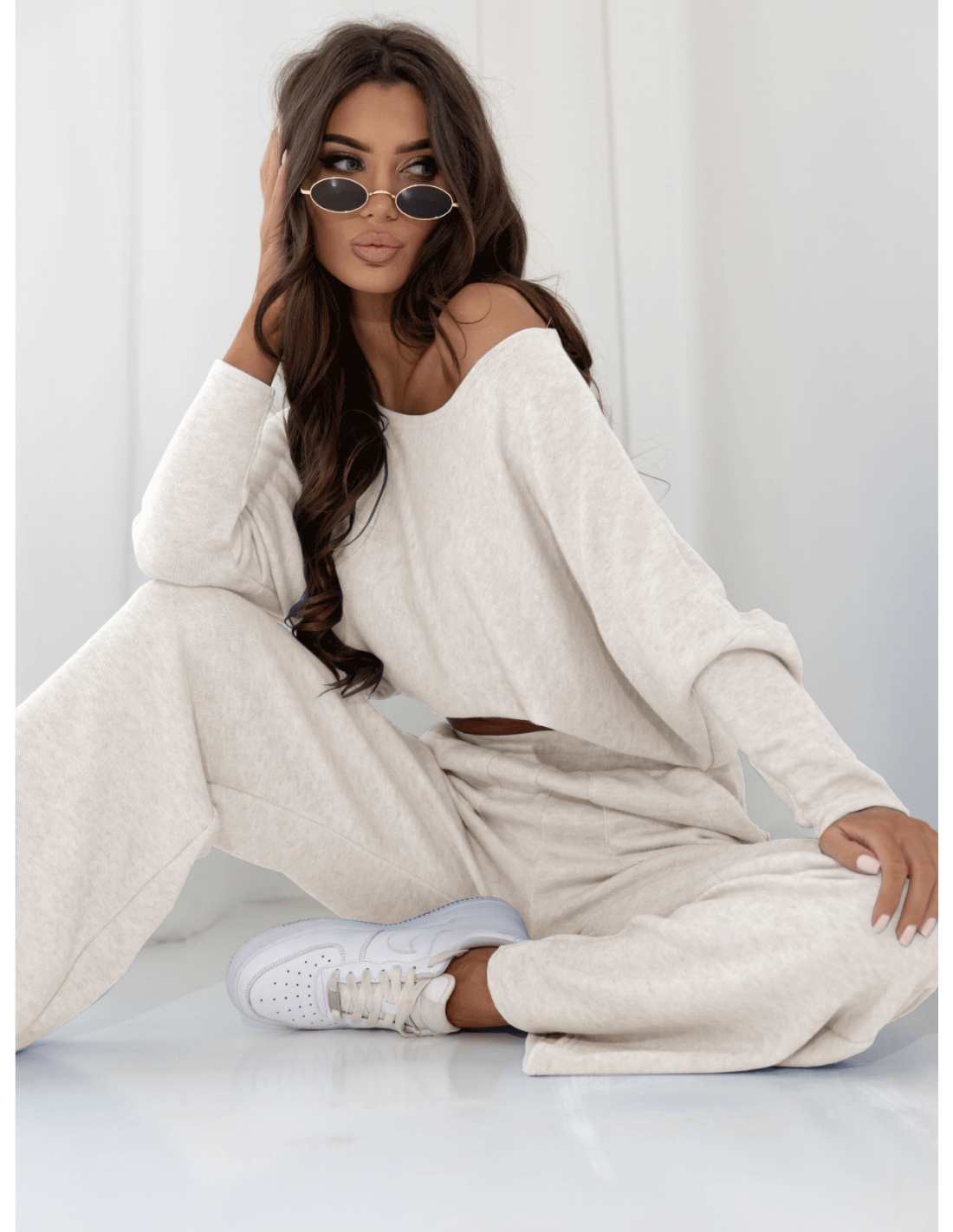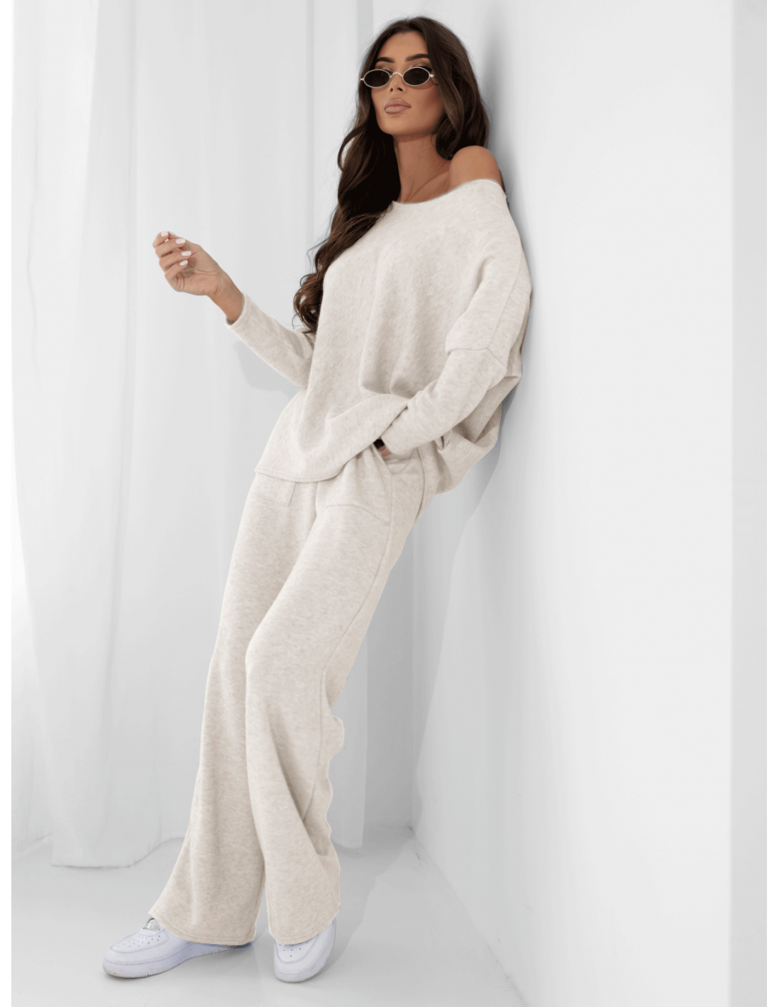 Komplet dzianinowy z szerokimi spodniami ELSINORE- cloud dancer