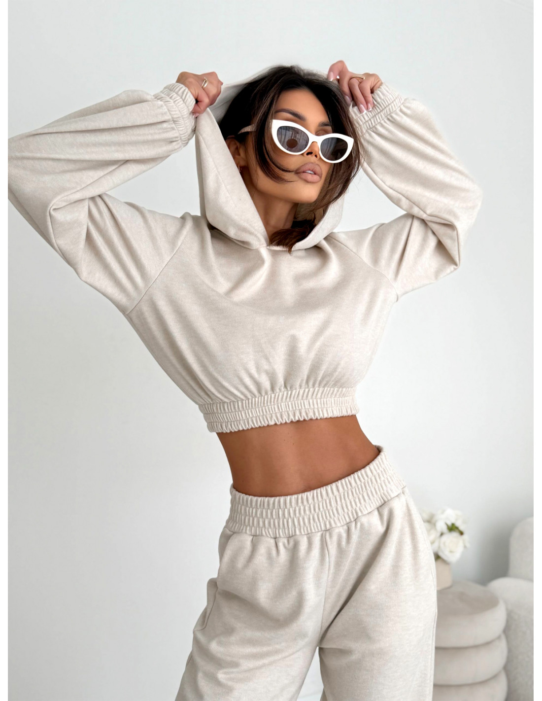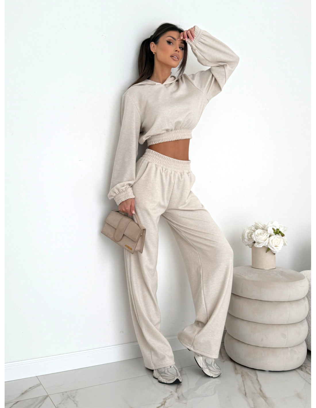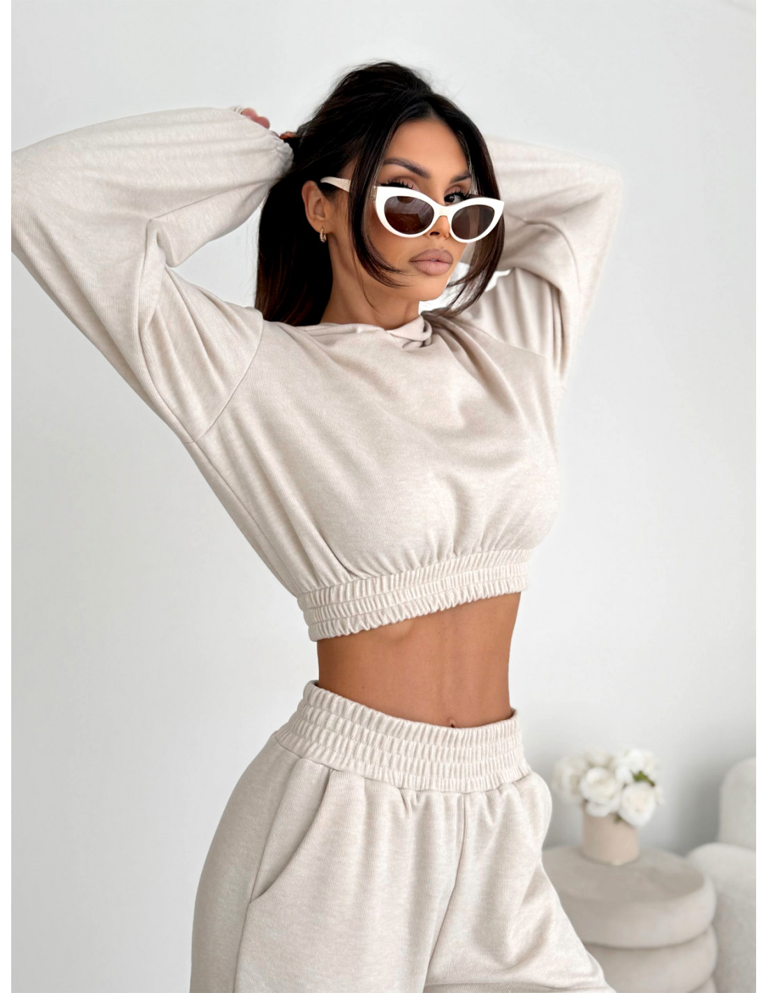 Komplet dzianinowy krótka bluza i spodnie AMBER - beżowy