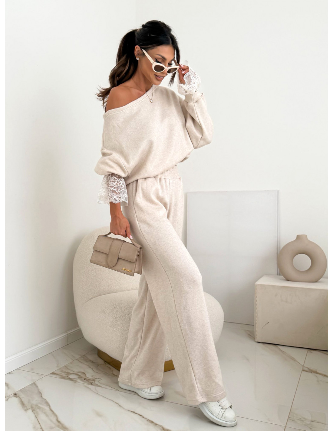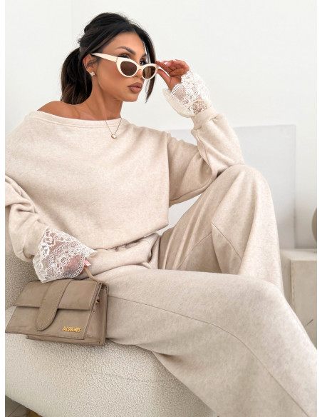 Komplet dzianinowy krótka bluza i spodnie ZURRI - beżowy