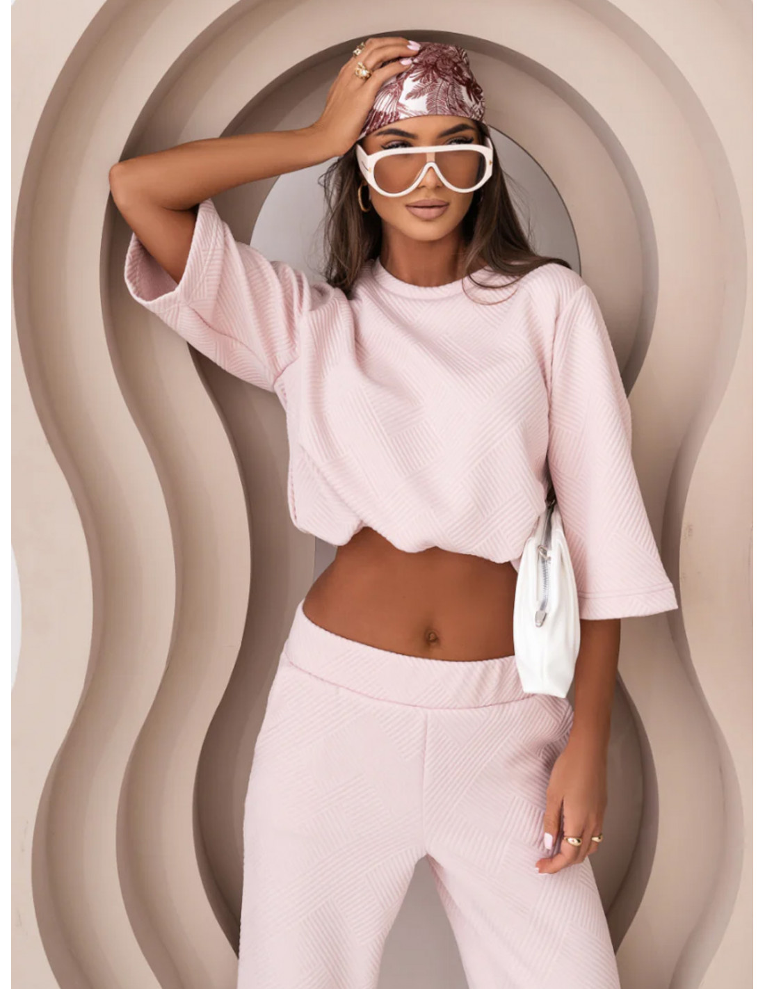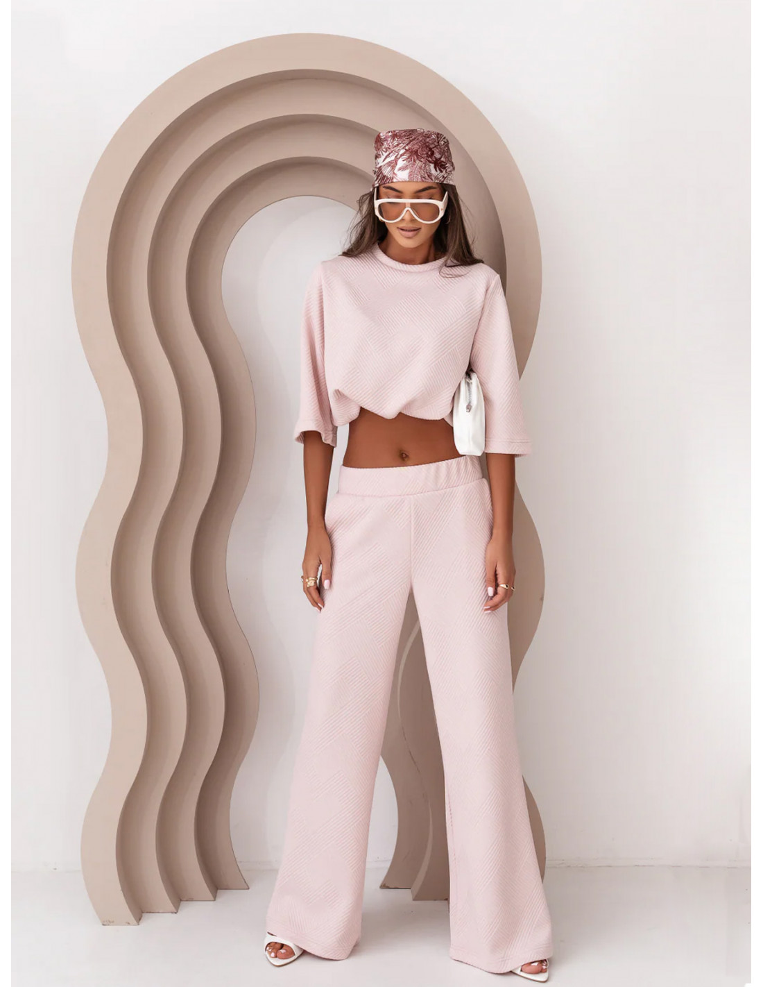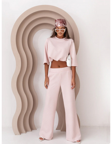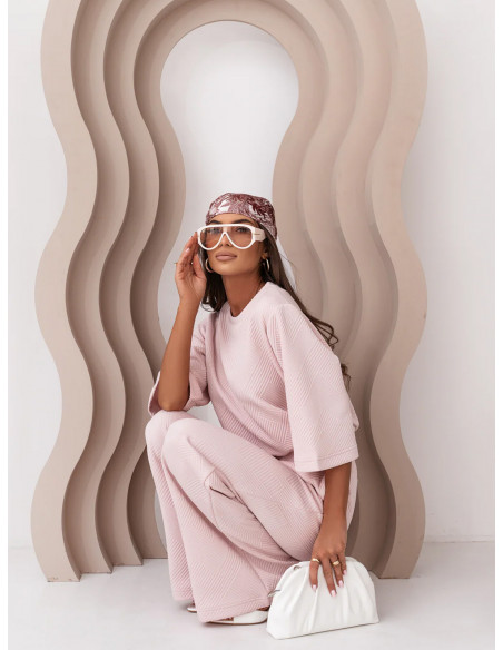 Komplet wiskozowy z szerokimi spodniami NAKIMI - pudrowy róż
