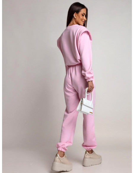 Wiskozowy dres krótka bluza i spodnie VERDA - pudrowy róż