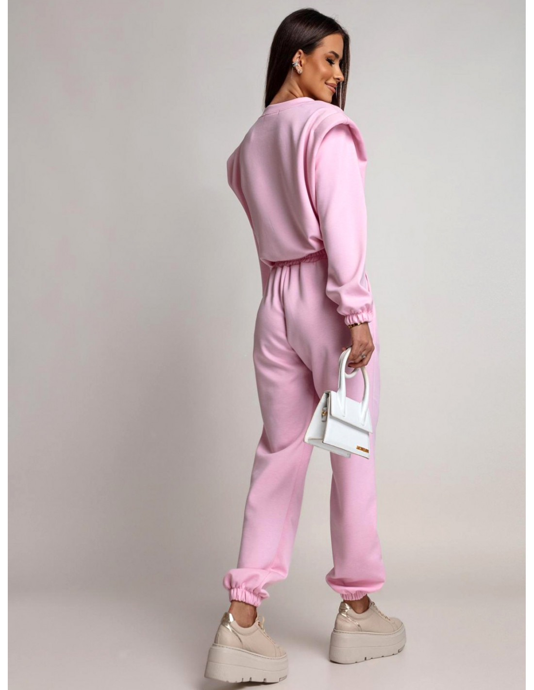 Załóż różowy dres, by podkreślić wiosenny vibe stylizacji.