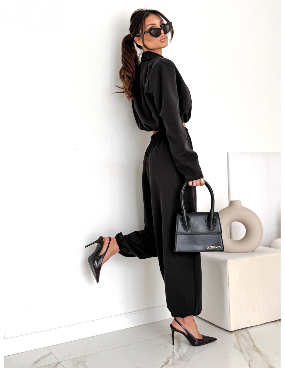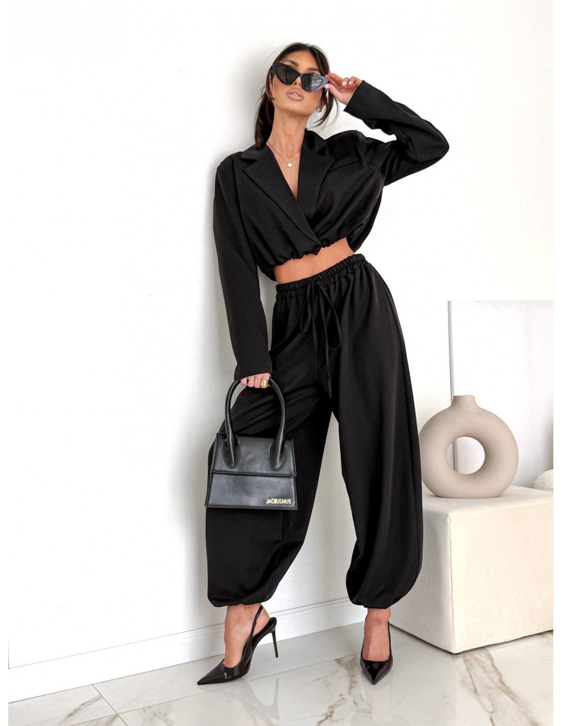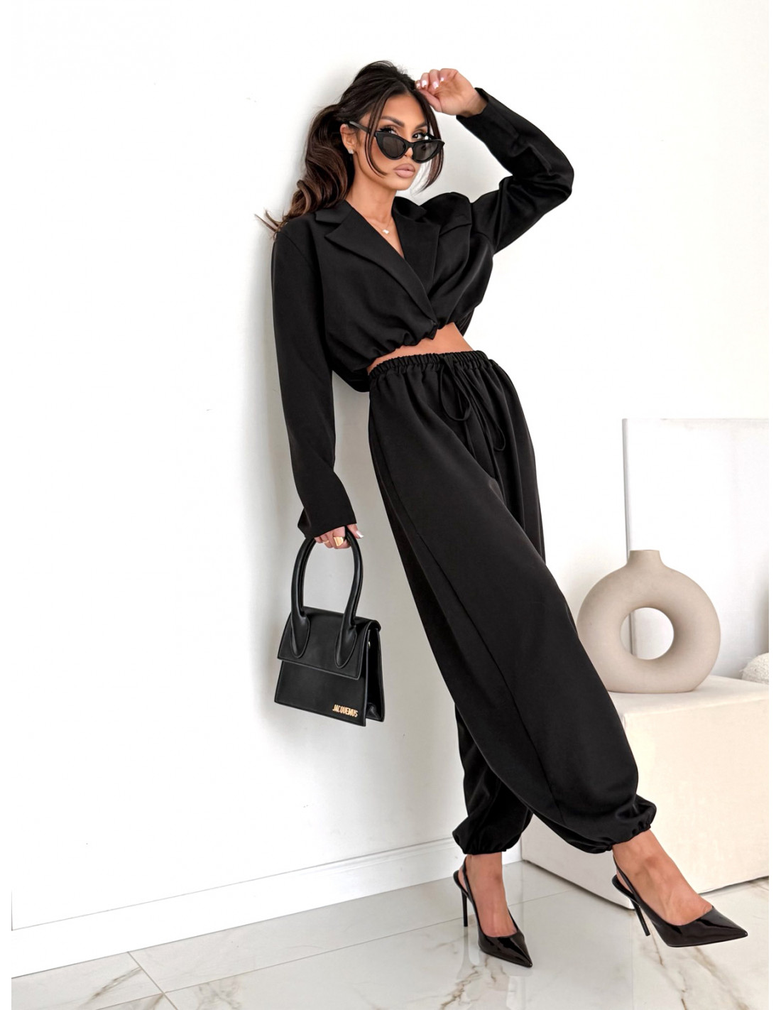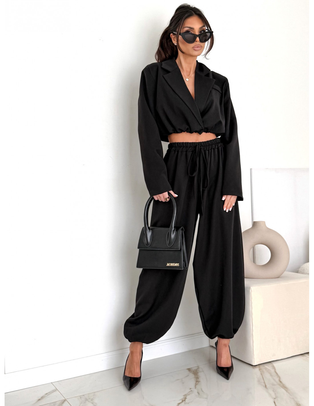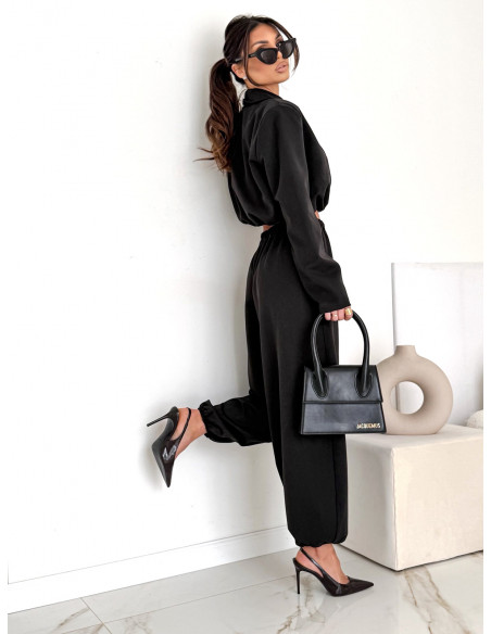 Bawełniany komplet marynarka i szerokie spodnie NAJRO - czarny