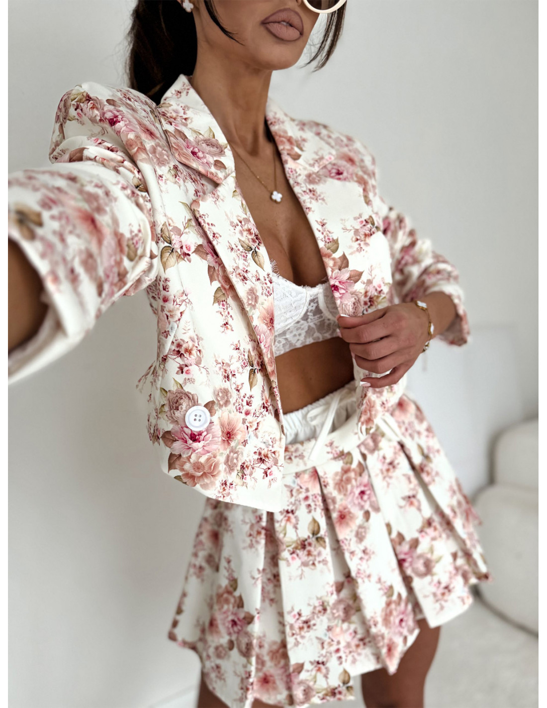 Ten komplet w kwiaty to esencja kobiecości i świeżości, która idealnie wpisuje się w najnowszy wiosenny vibe.