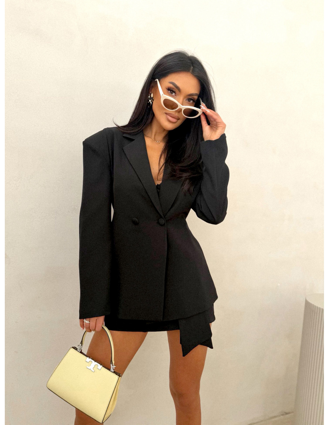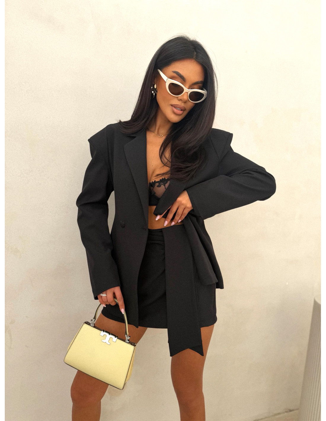 Ten czarny komplet to definicja ponadczasowej klasy w nowoczesnym wydaniu – idealny dla kobiet, które kochają mocny, kobiecy i elegancki styl.