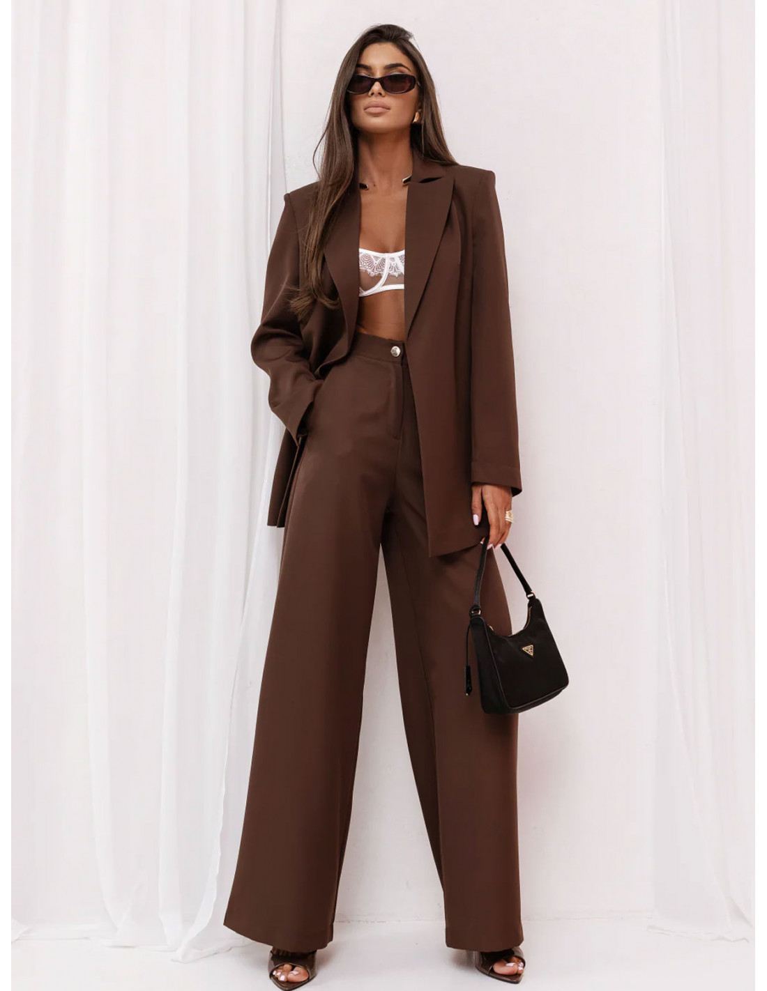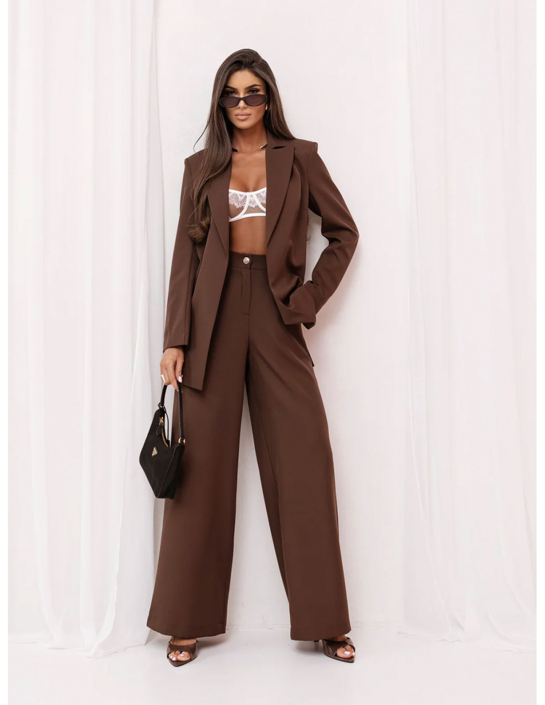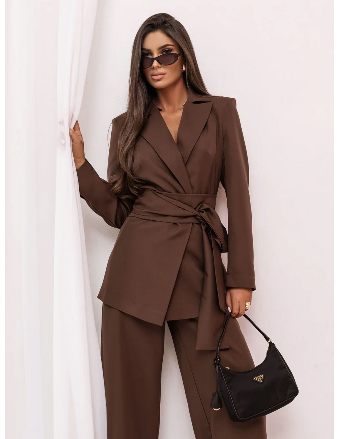 Stylowy garnitur z wiązaną marynarką MARCJA - czekoladowy
