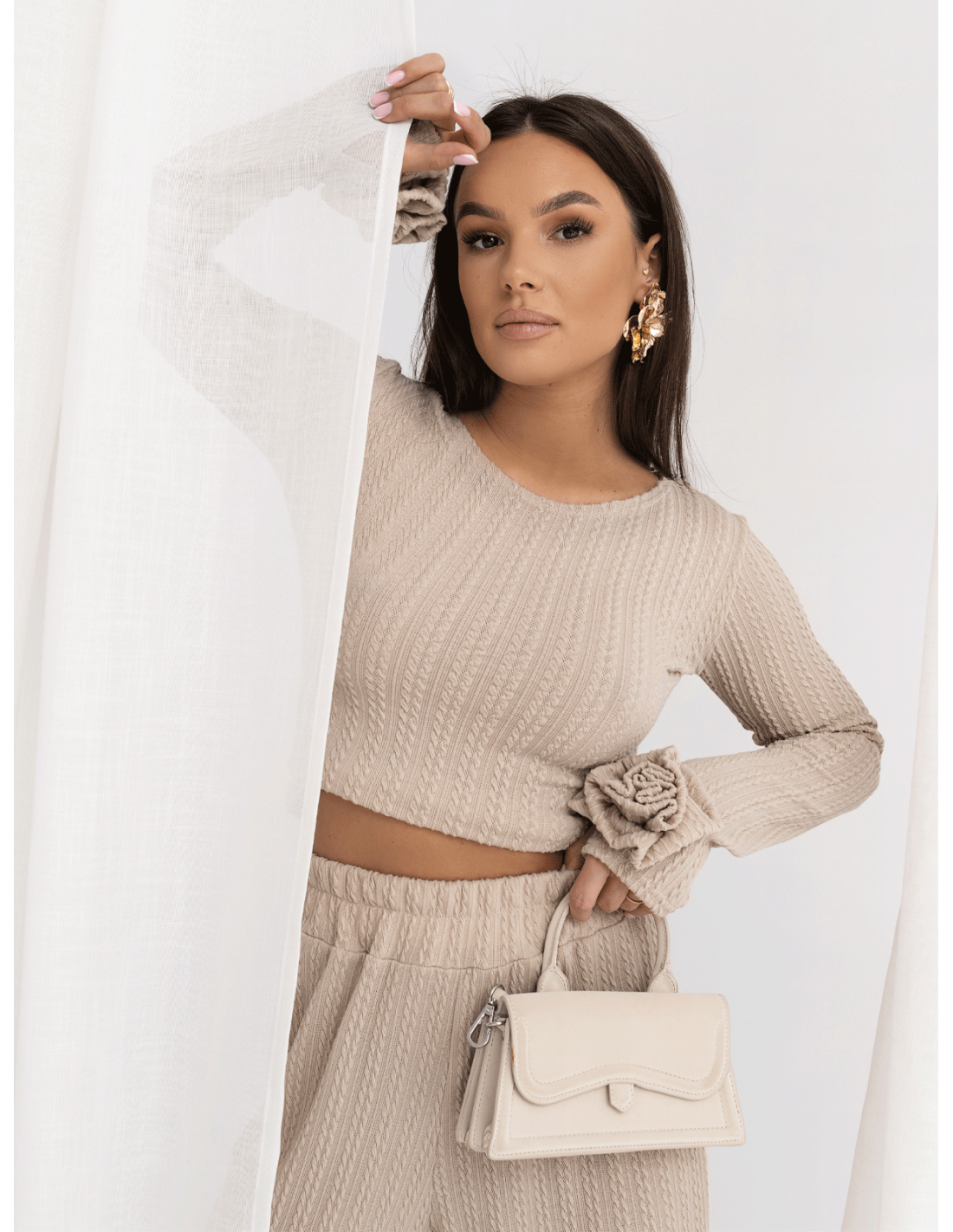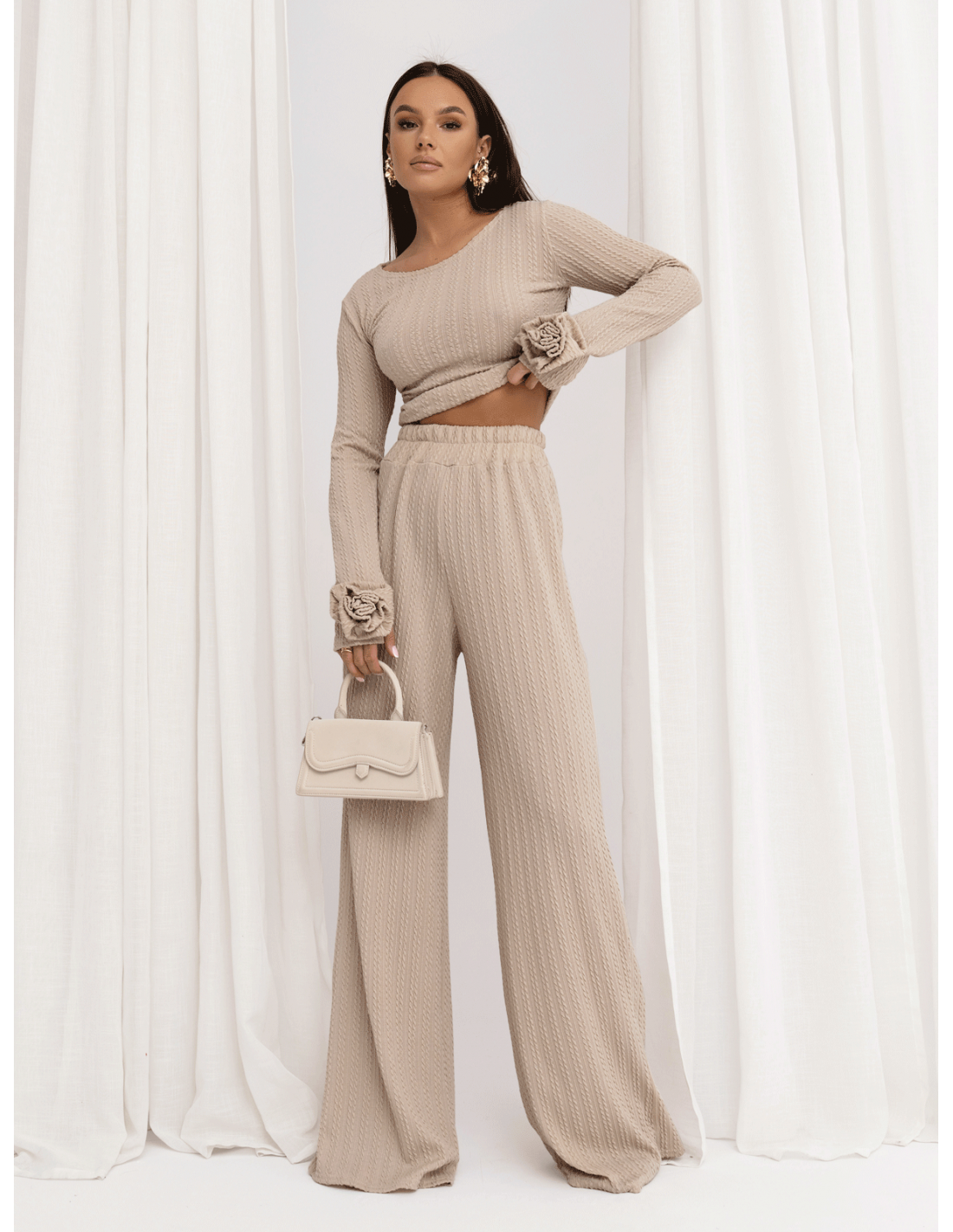Stylowy komplet z plecionej dzianiny MAVEN - beżowy
