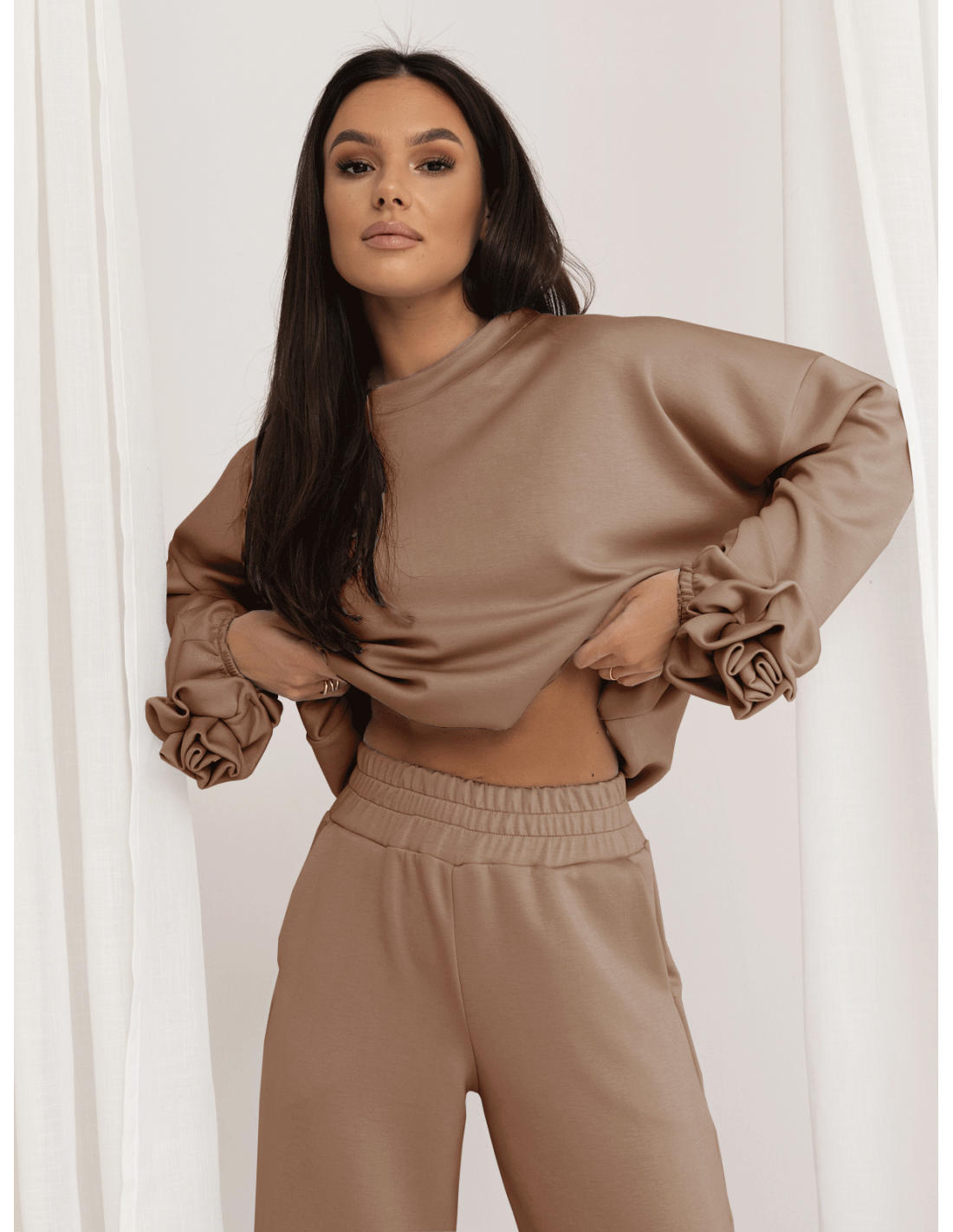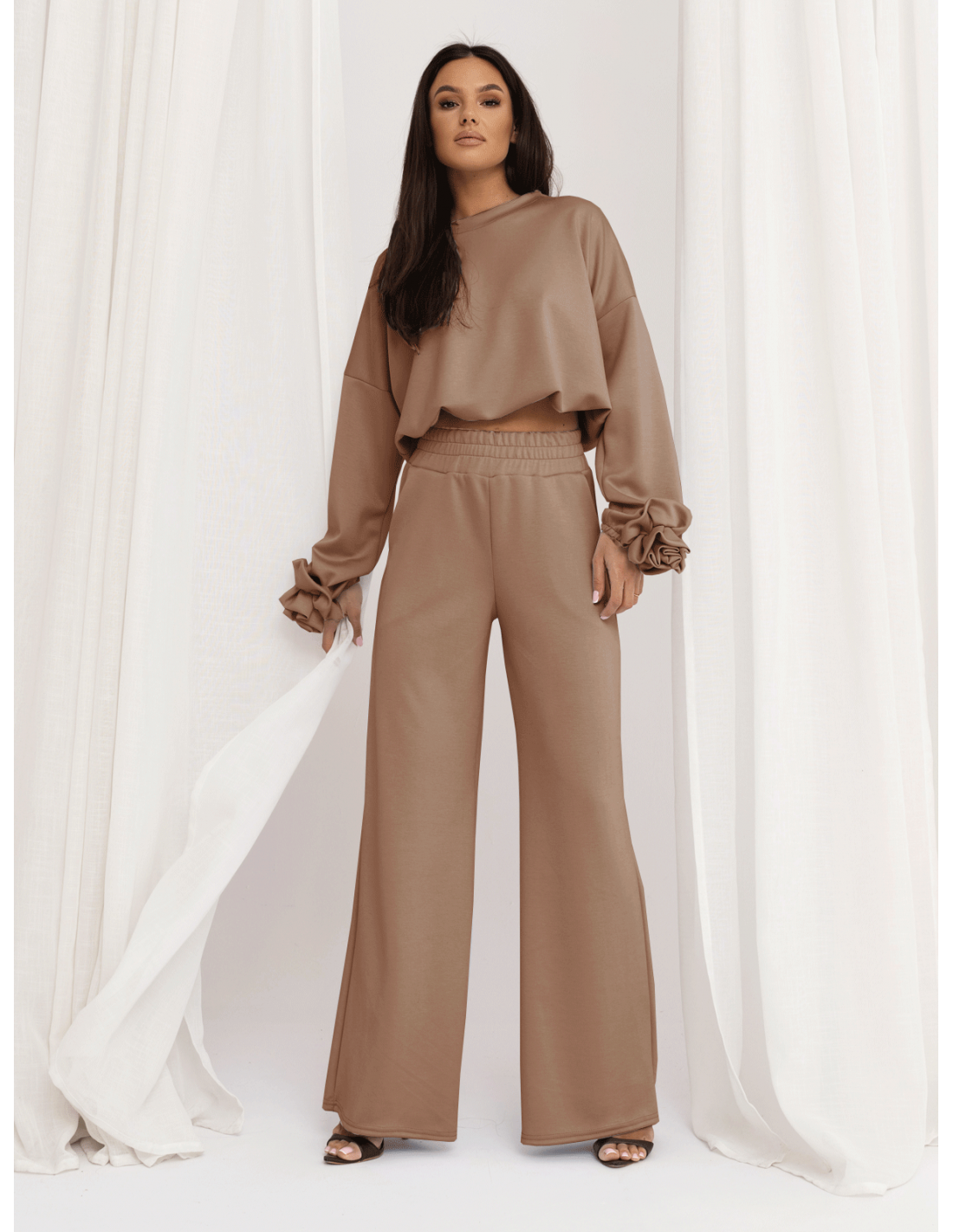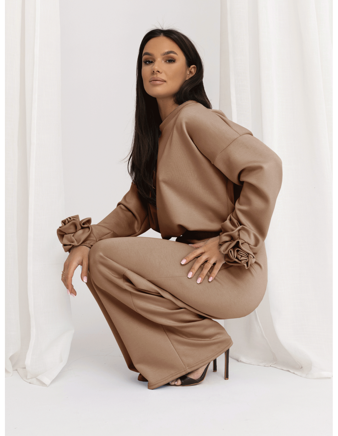 Masełkowy komplet z szerokimi spodniami POSY - beżowy