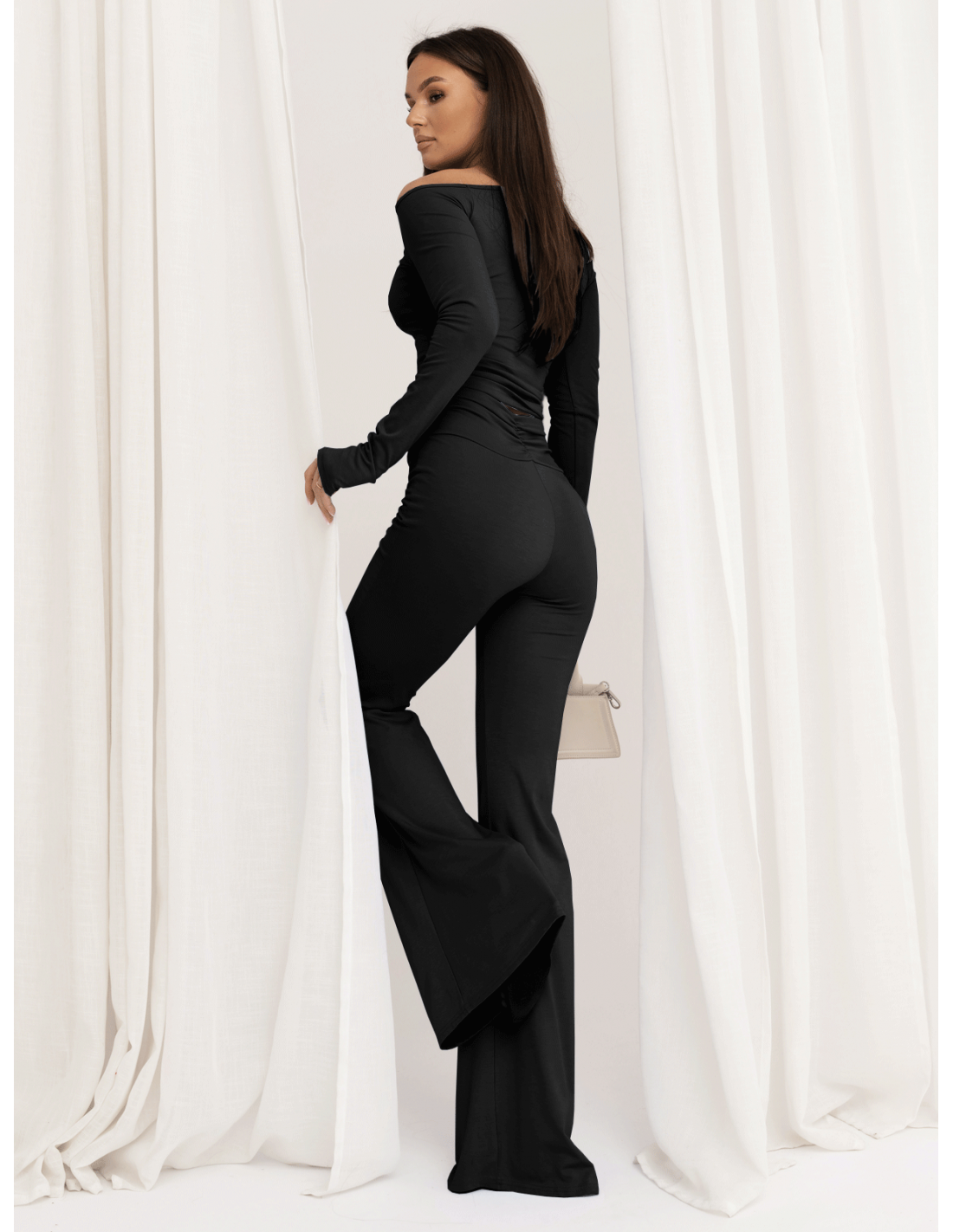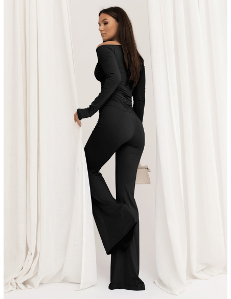 Masełkowy komplet bluzka i spodnie dzwony OTTILIE - czarny