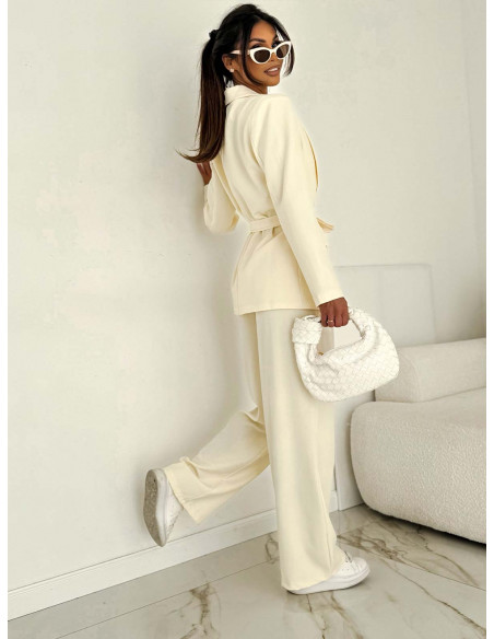 Bawełniany garnitur z szerokimi spodniami IRETI - waniliowy