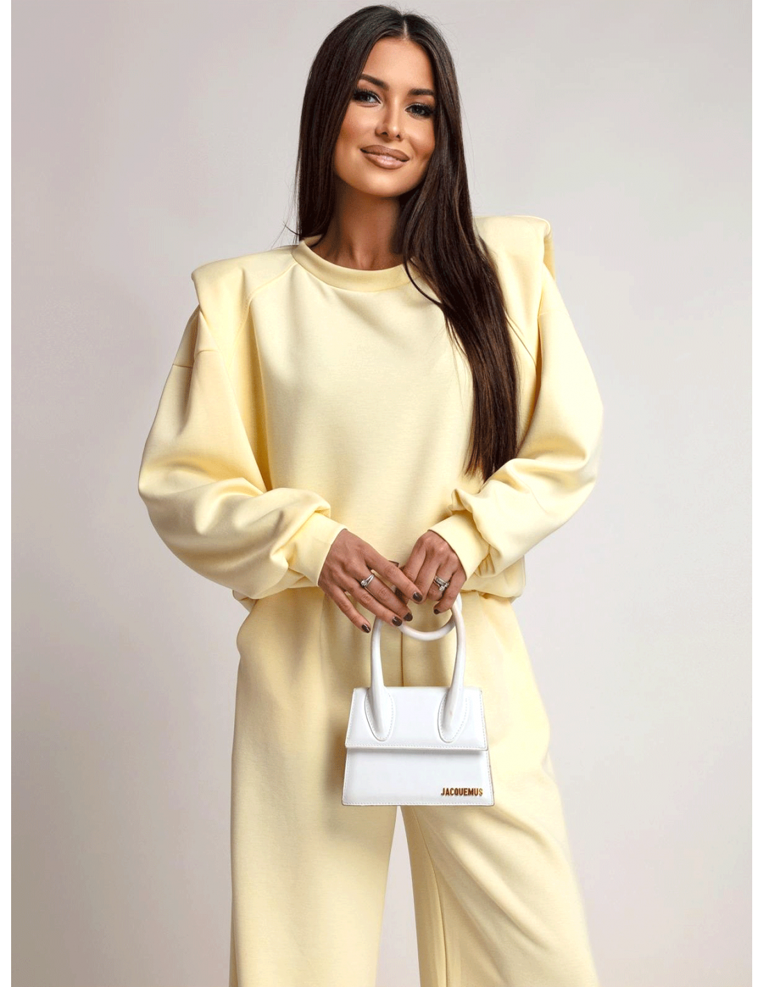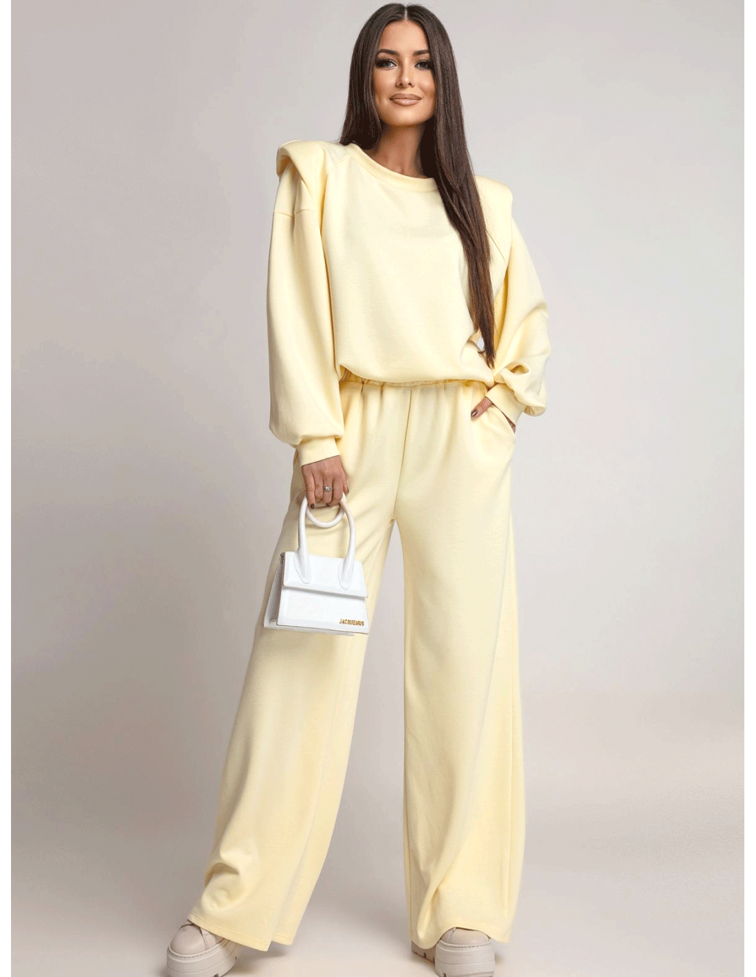 Cytrynowy dres idealnie wygląda w połączeniu ze sneakersami lub botkami oraz minimalistyczną torebką.