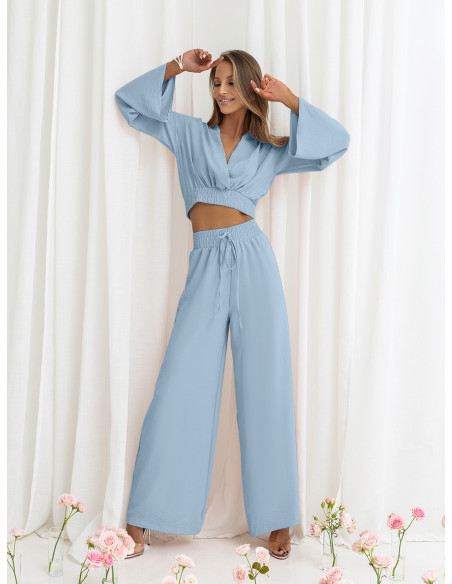 Komplet crop top z szerokimi spodniami SERRINA - błękitny