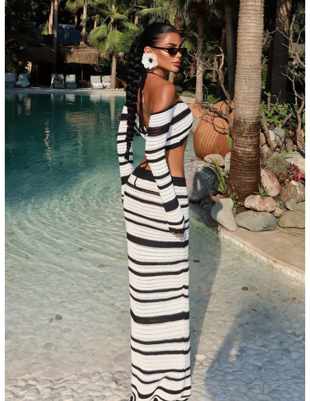 Do kompletu dołączona jest dopasowana spódnica maxi, która pięknie wydłuża sylwetkę i podkreśla jej proporcje.