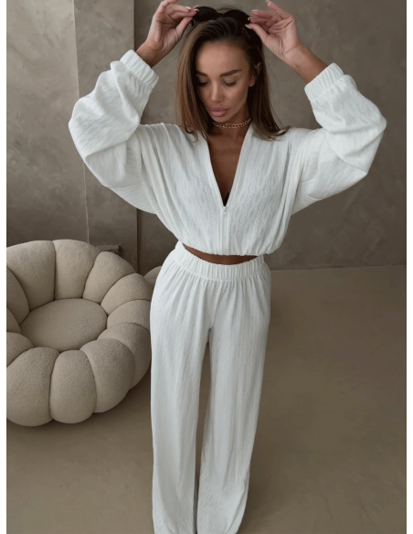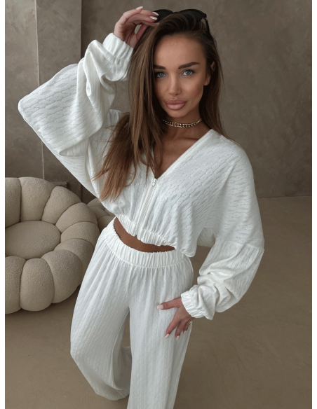 Stylowy komplet z plecionej dzianiny KIKI - ecru