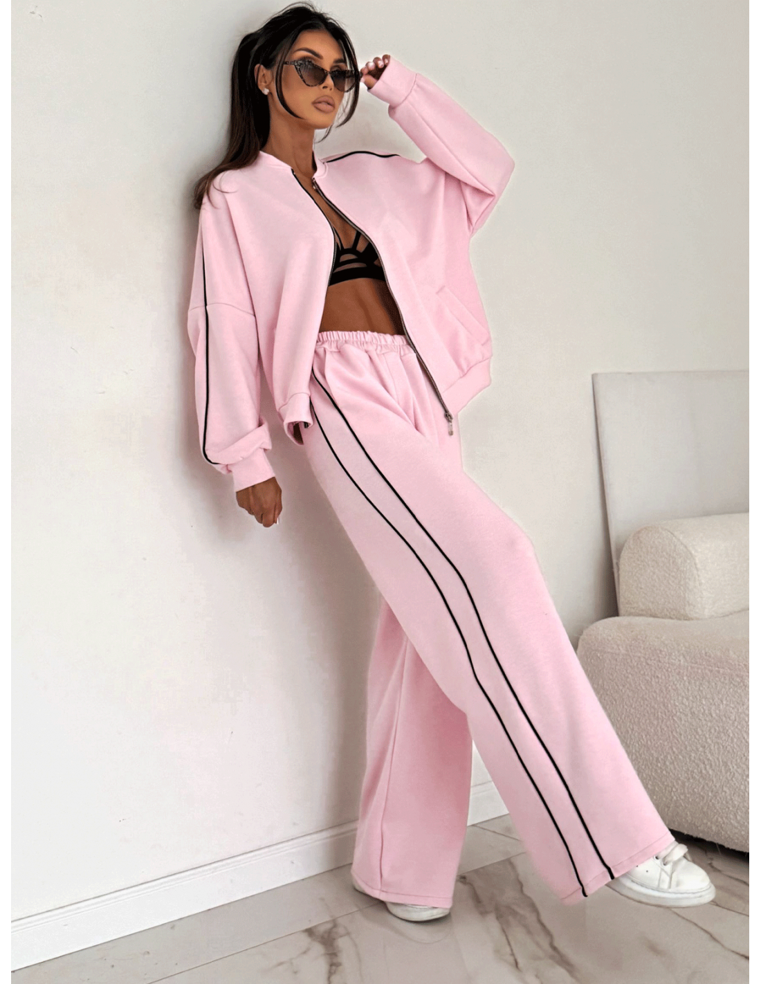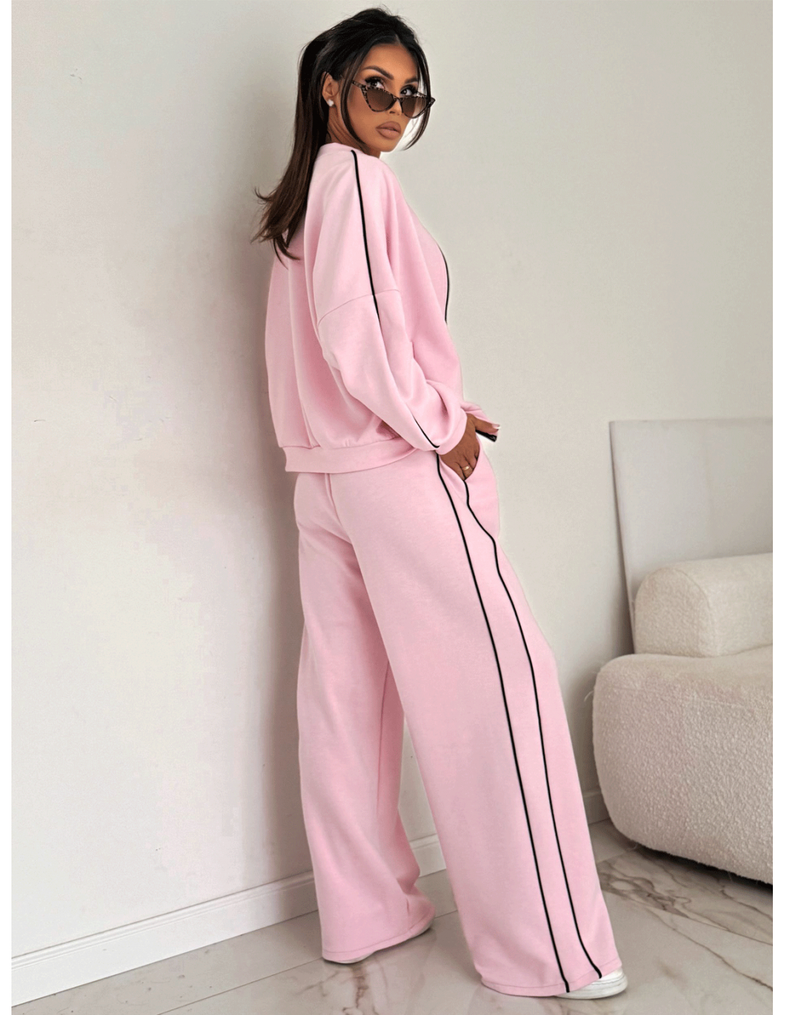 Komplet dresowy z szerokimi spodniami KILEY - pudrowy róż