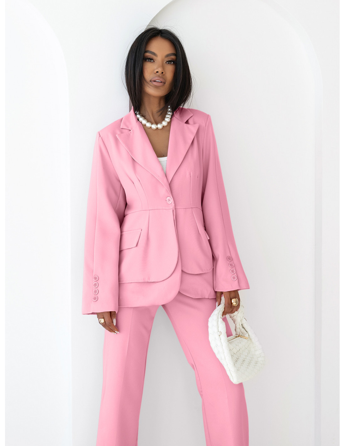 Garnitur taliowana marynarka i spodnie JASIRI - pudrowy róż