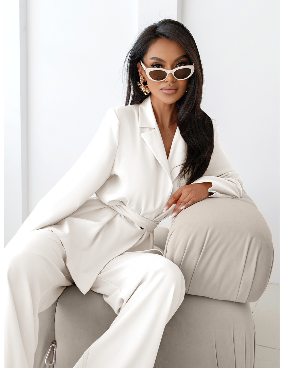 Biały komplet łączy w sobie elegancję i klasę, dzięki czemu każda stylizacja nabiera wyjątkowego charakteru.