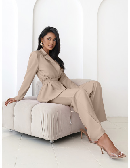 Beżowy komplet łączy w sobie elegancję i klasę, dzięki czemu każda stylizacja nabiera wyjątkowego charakteru.