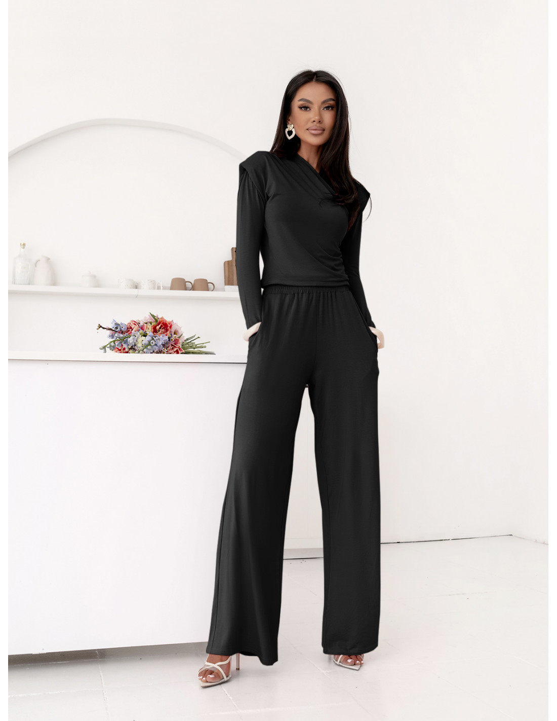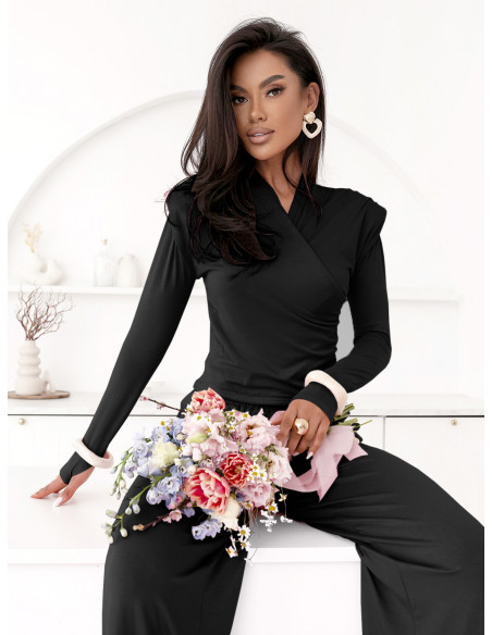 Wiskozowy komplet przekładana bluzka i spodnie LAO - czarny