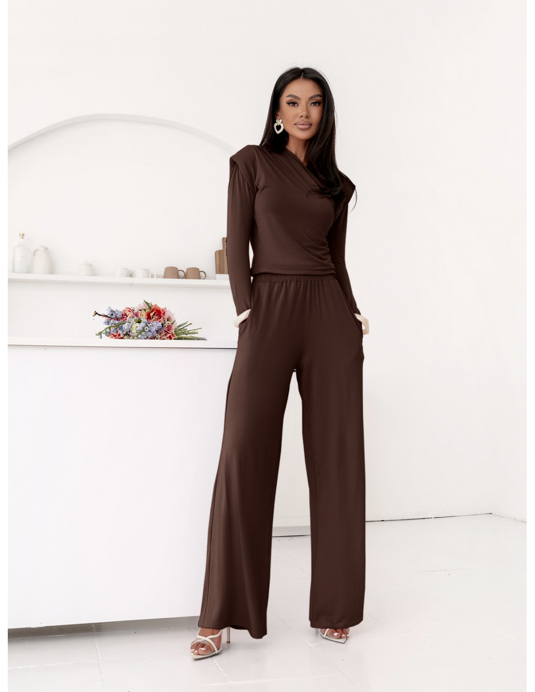 Wiskozowy komplet przekładana bluzka i spodnie LAO - czekoladowy