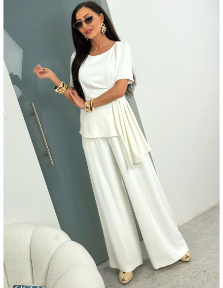 Elegancki komplet z szerokimi spodniami BESSY - biały