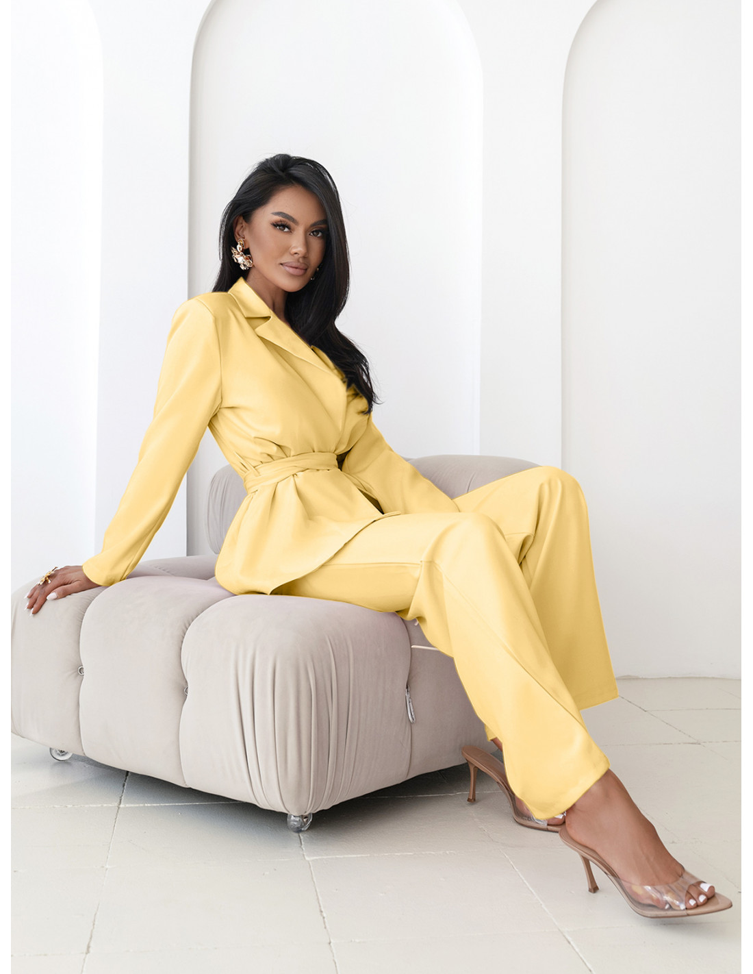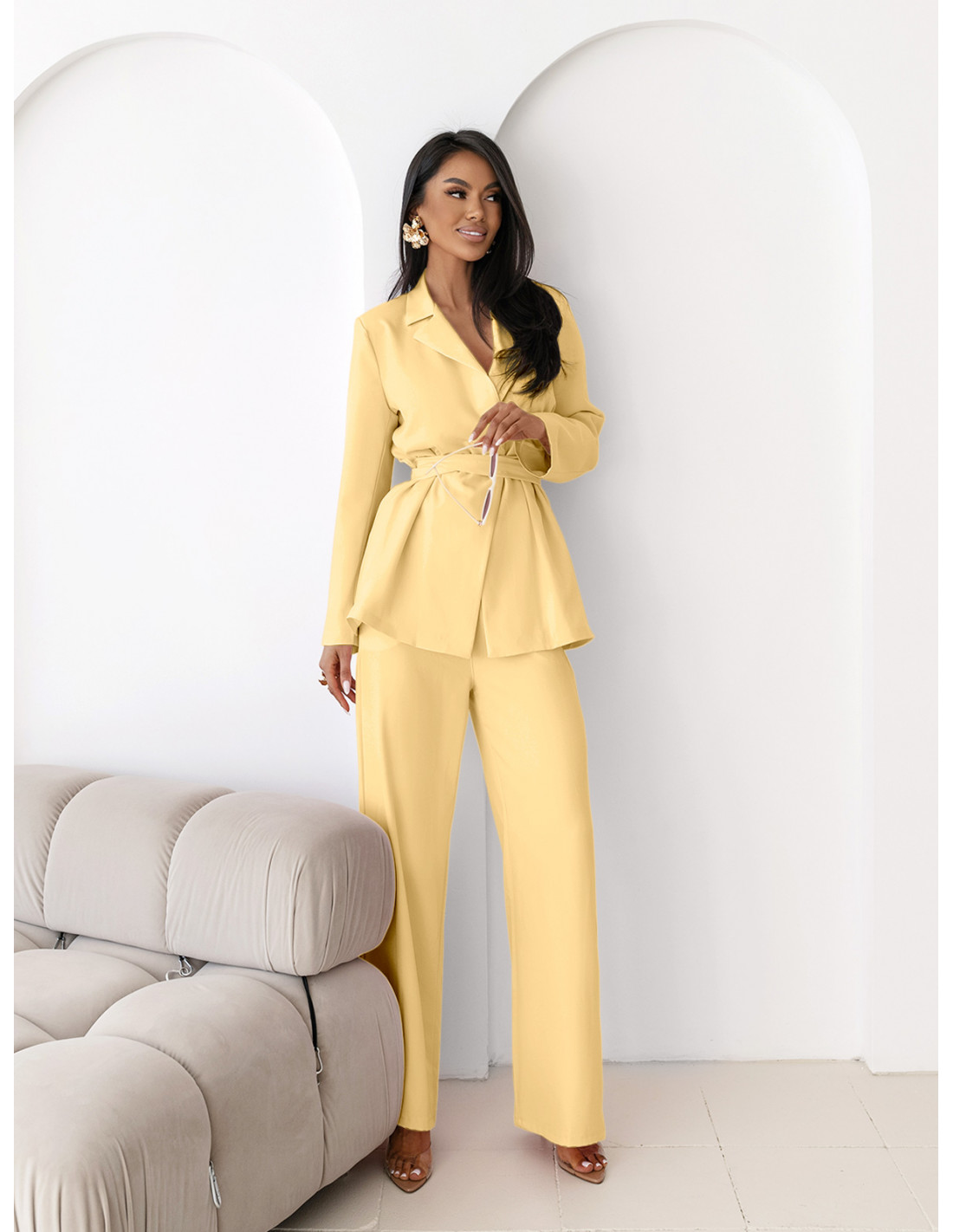Bananowy komplet łączy w sobie elegancję i klasę, dzięki czemu każda stylizacja nabiera wyjątkowego charakteru.