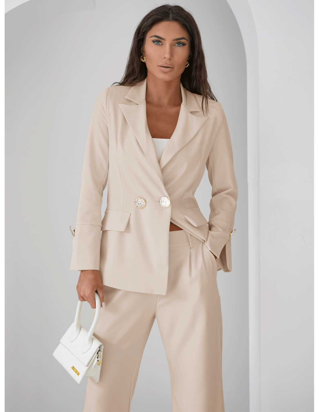 Komplet marynarka i szerokie spodnie KIZZY - beżowy