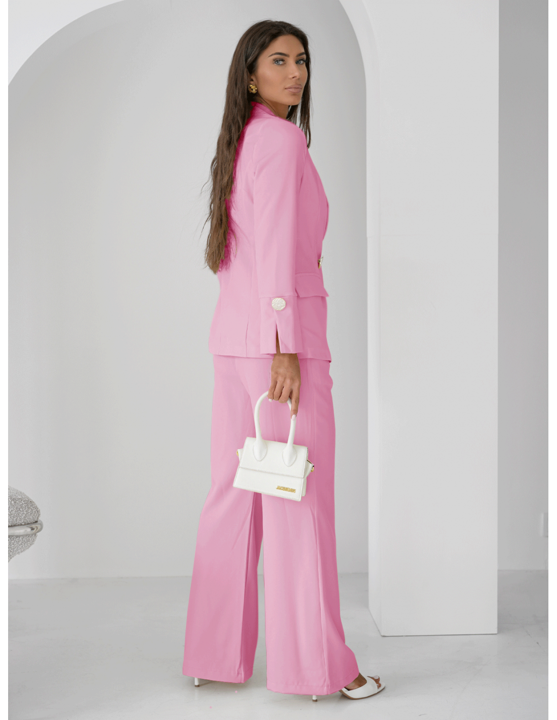 Komplet marynarka i szerokie spodnie KIZZY - pudrowy róż