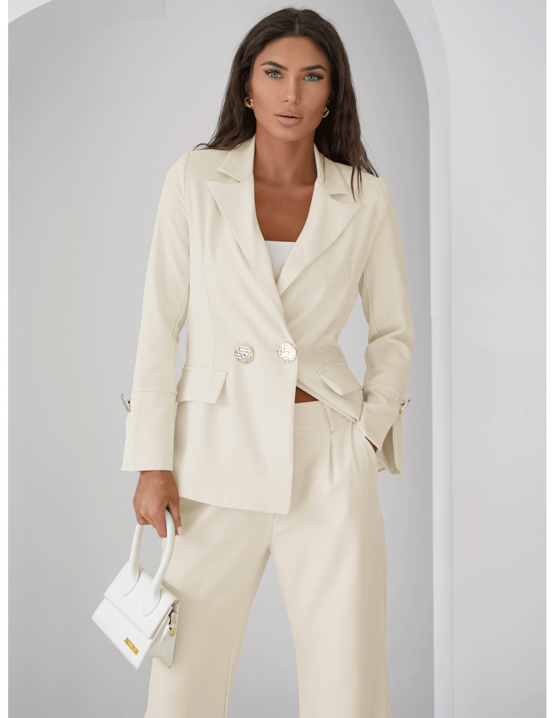 Śmietankowy odcień kompletu to must-have sezonu – elegancki, uniwersalny i niezwykle stylowy.