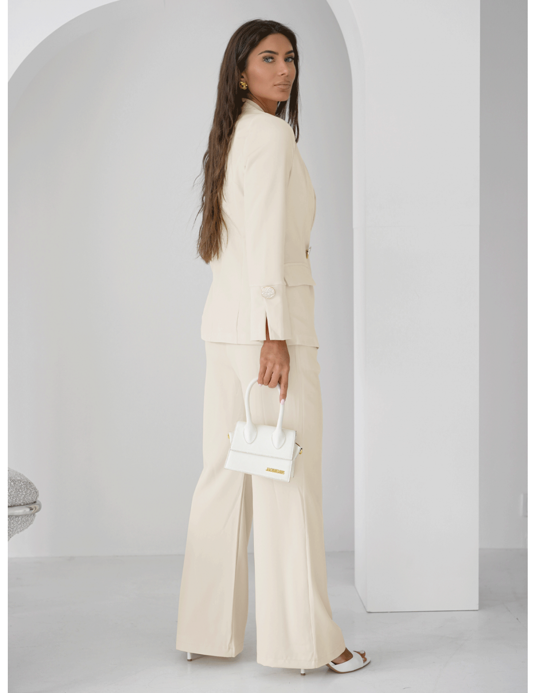 Komplet marynarka i szerokie spodnie KIZZY - śmietankowy