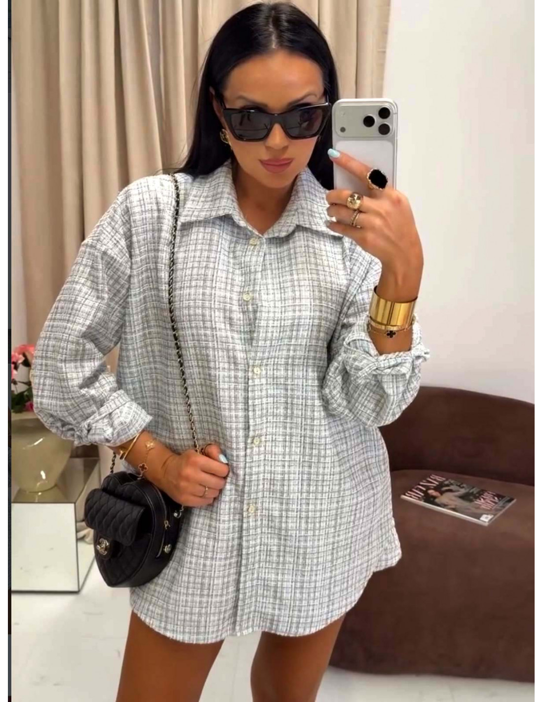 Ten bawełniany i stylowy komplet składający się z koszuli oraz szortów to idealna propozycja dla kobiet ceniących modę z nutą luksusu.
