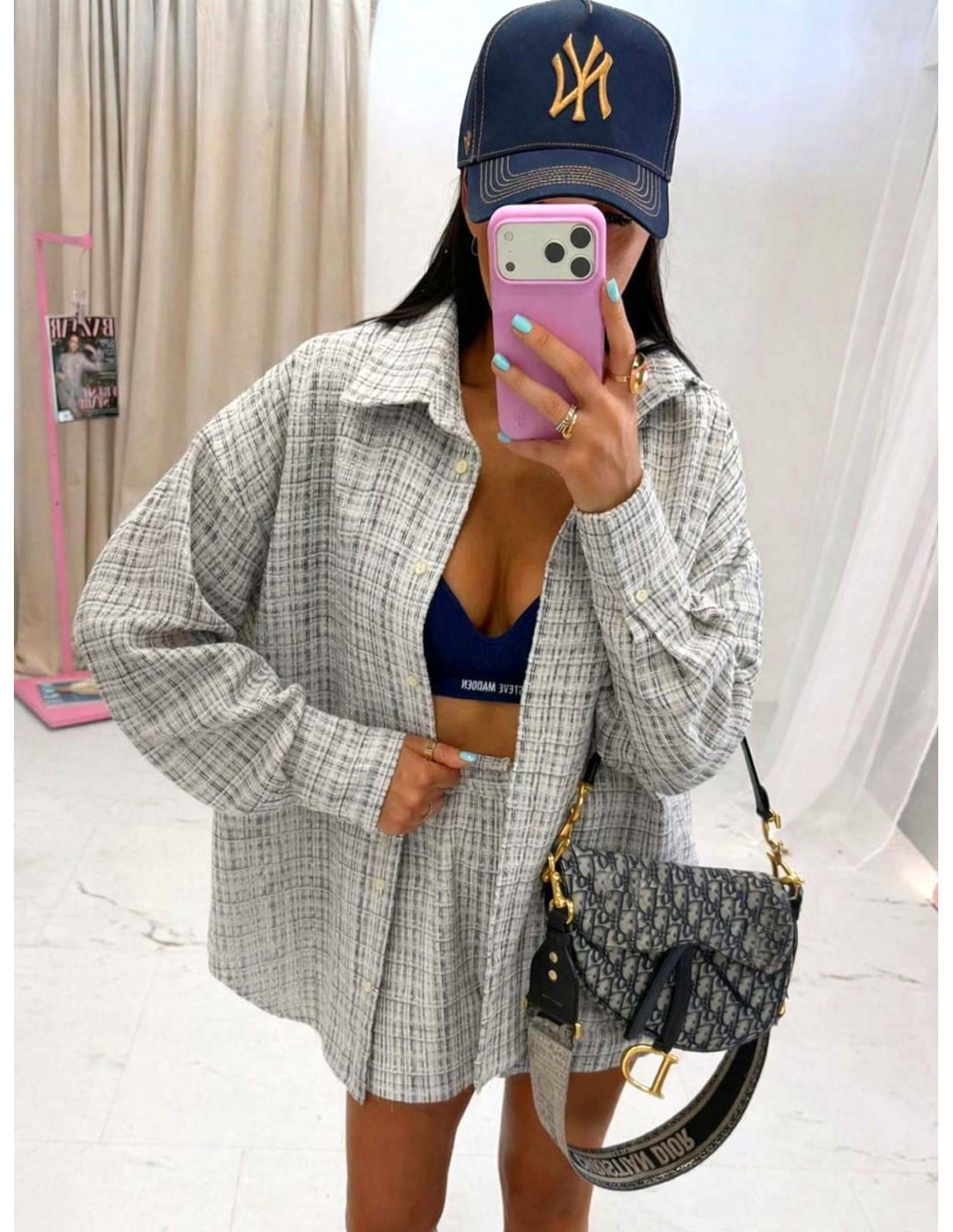 Szorty doskonale dopełniają całość, tworząc spójny, kobiecy i niezwykle modny zestaw.