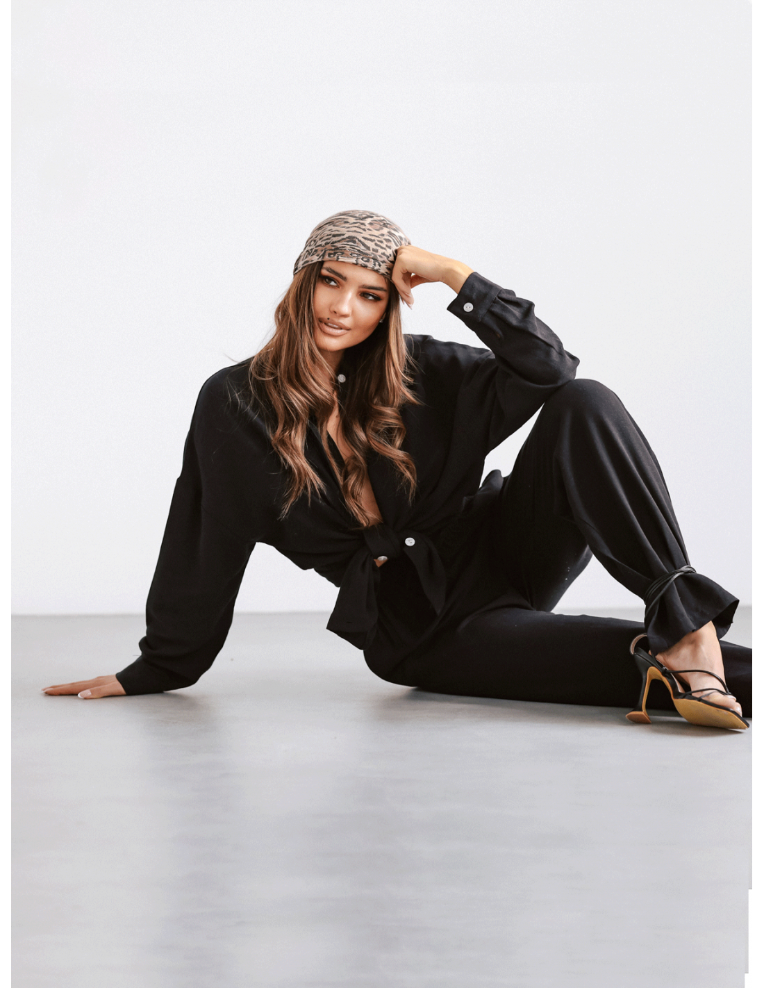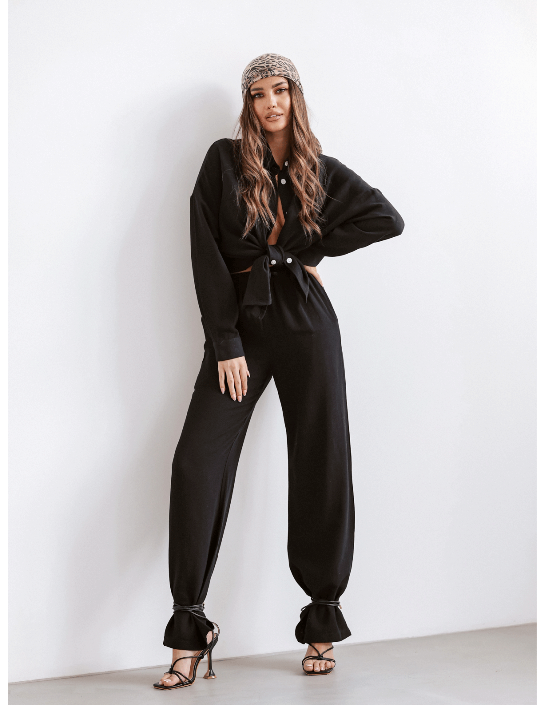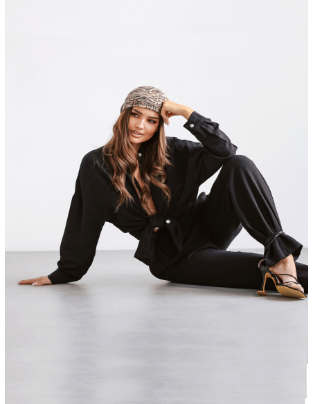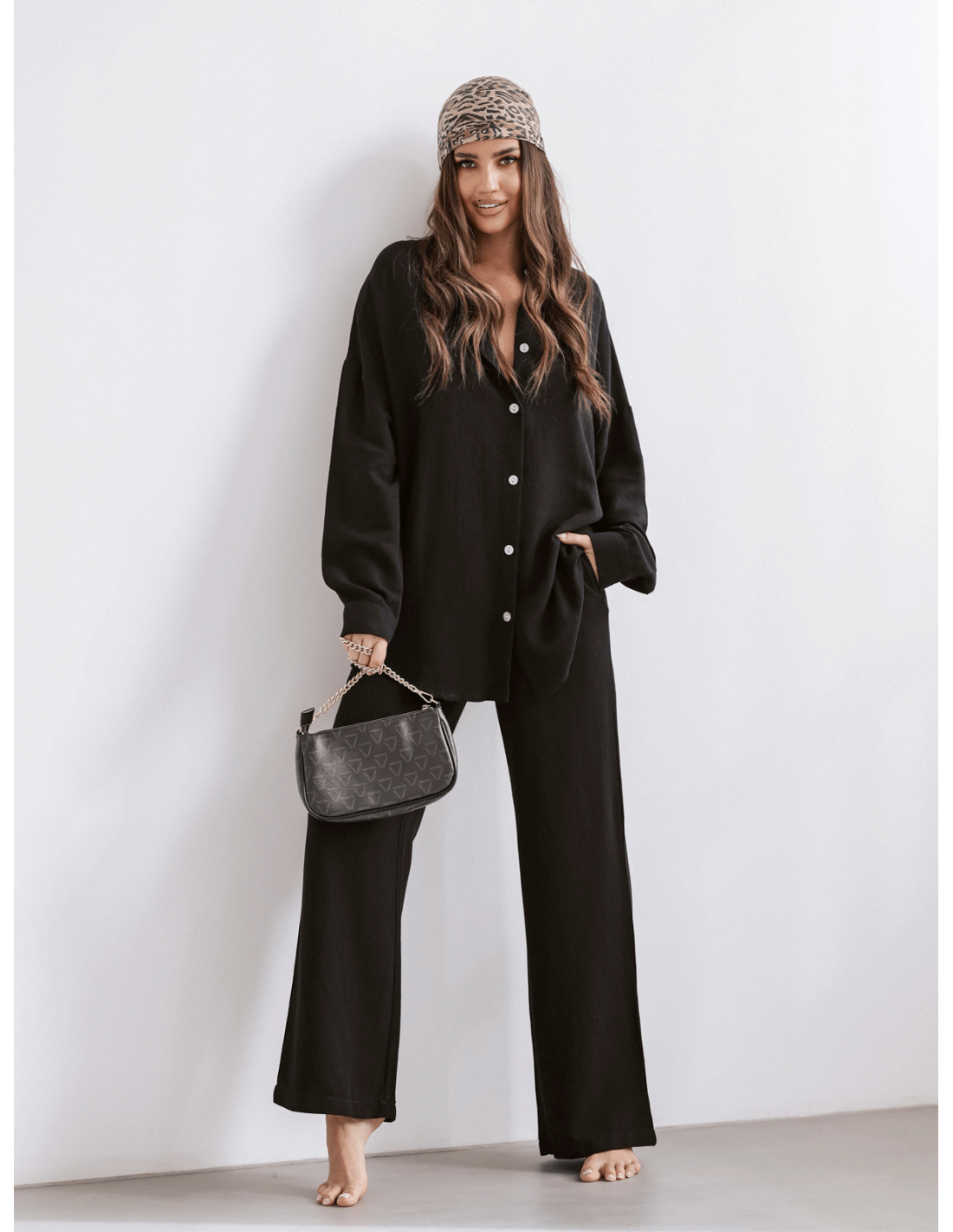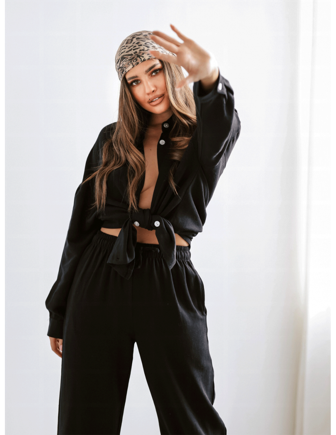 Bawełniany komplet koszula i szerokie spodnie SURI - czarny