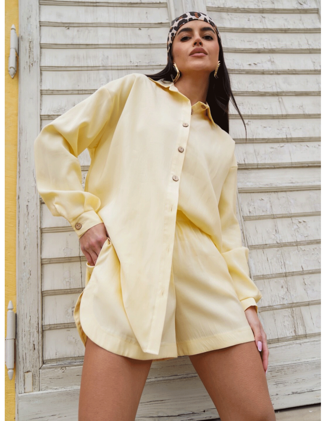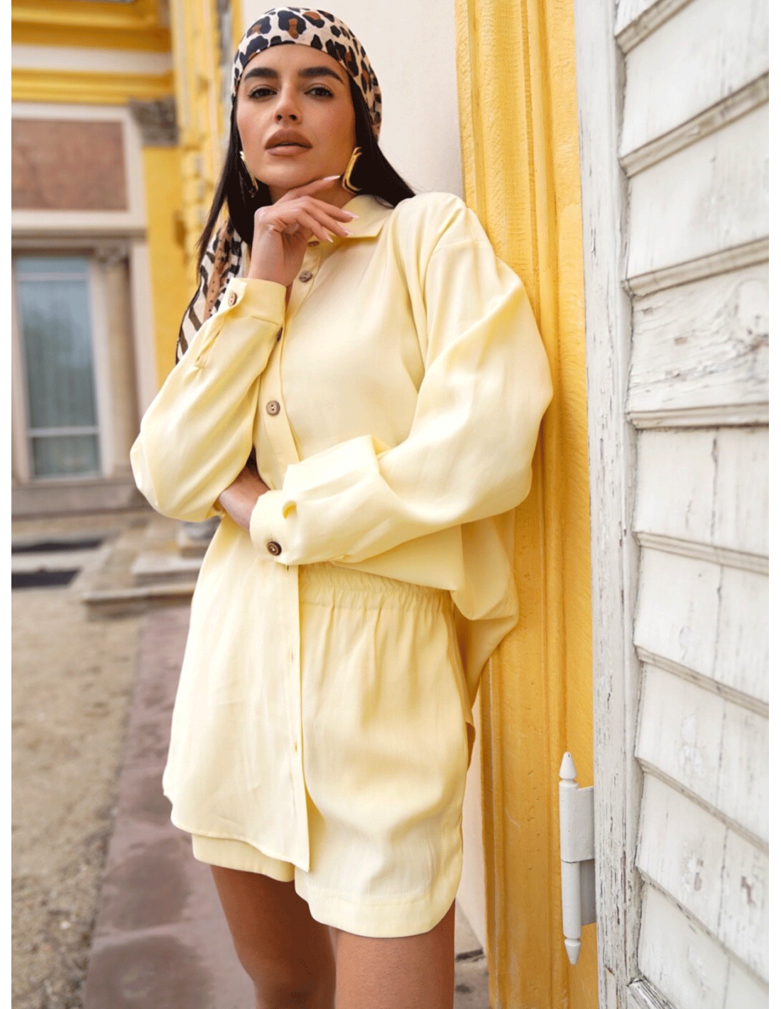 Wiskozowy komplet koszula i spodenki CADRA - cytrynowy