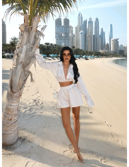 Komplet koszula i spodenki w paski LINARA - beżowy