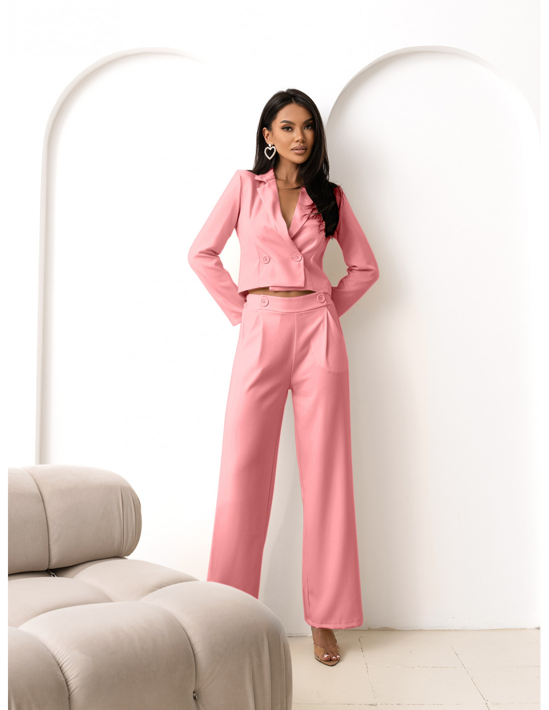 Garnitur marynarka i szerokie spodnie LUTTA - pudrowy róż