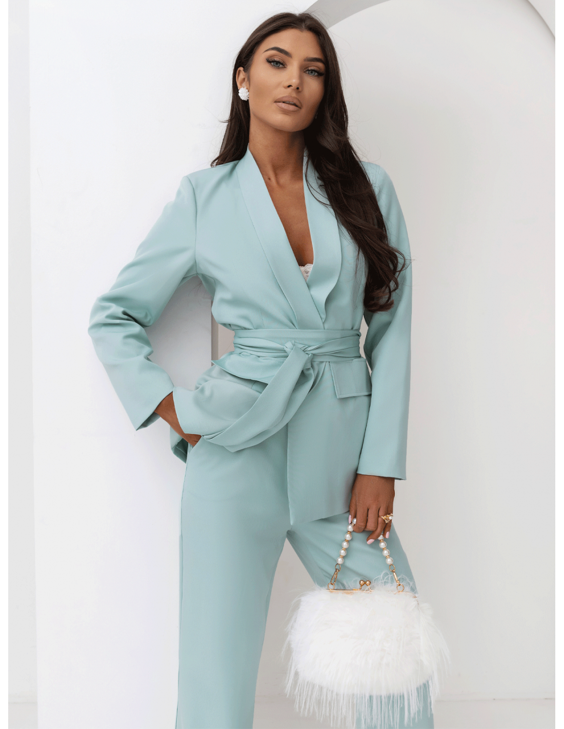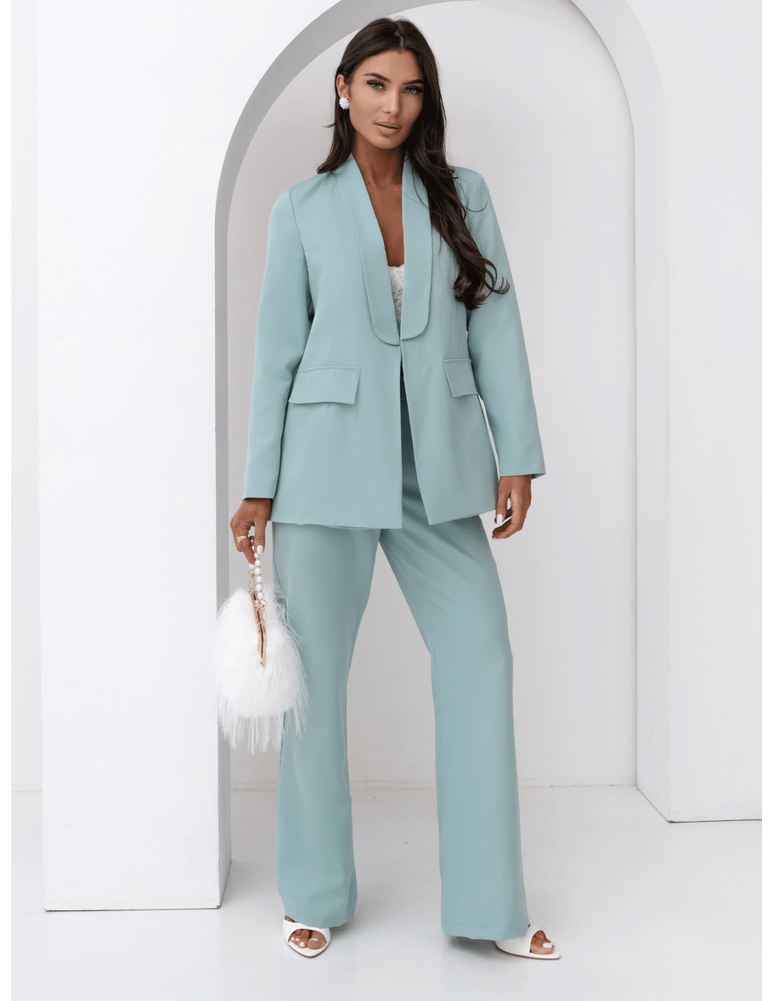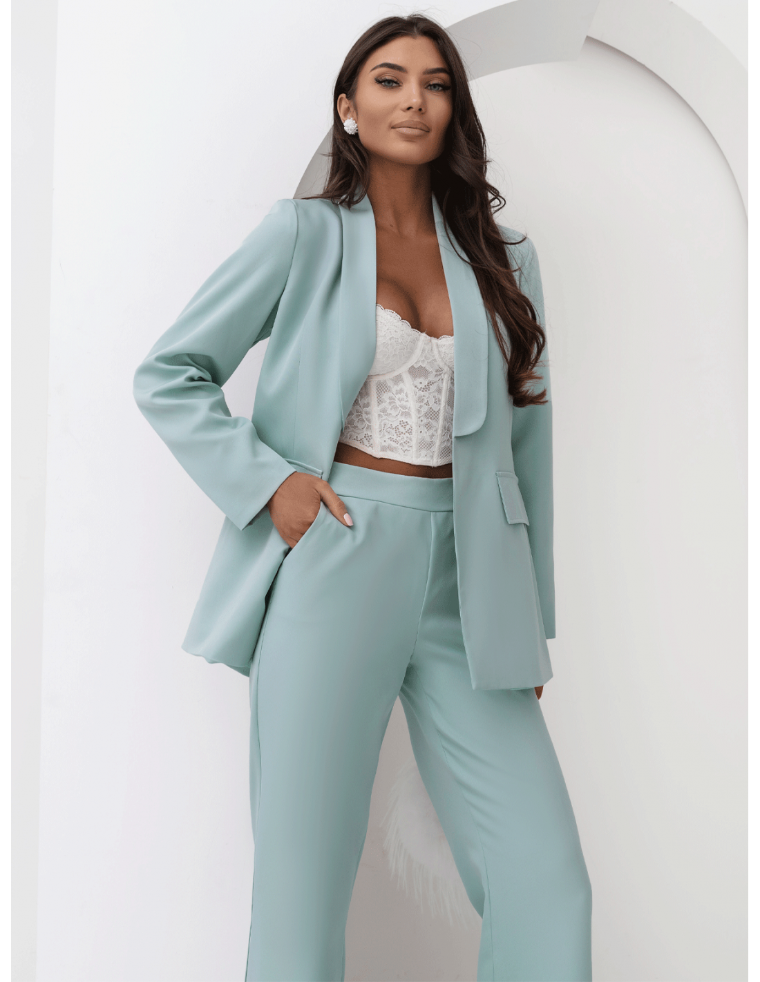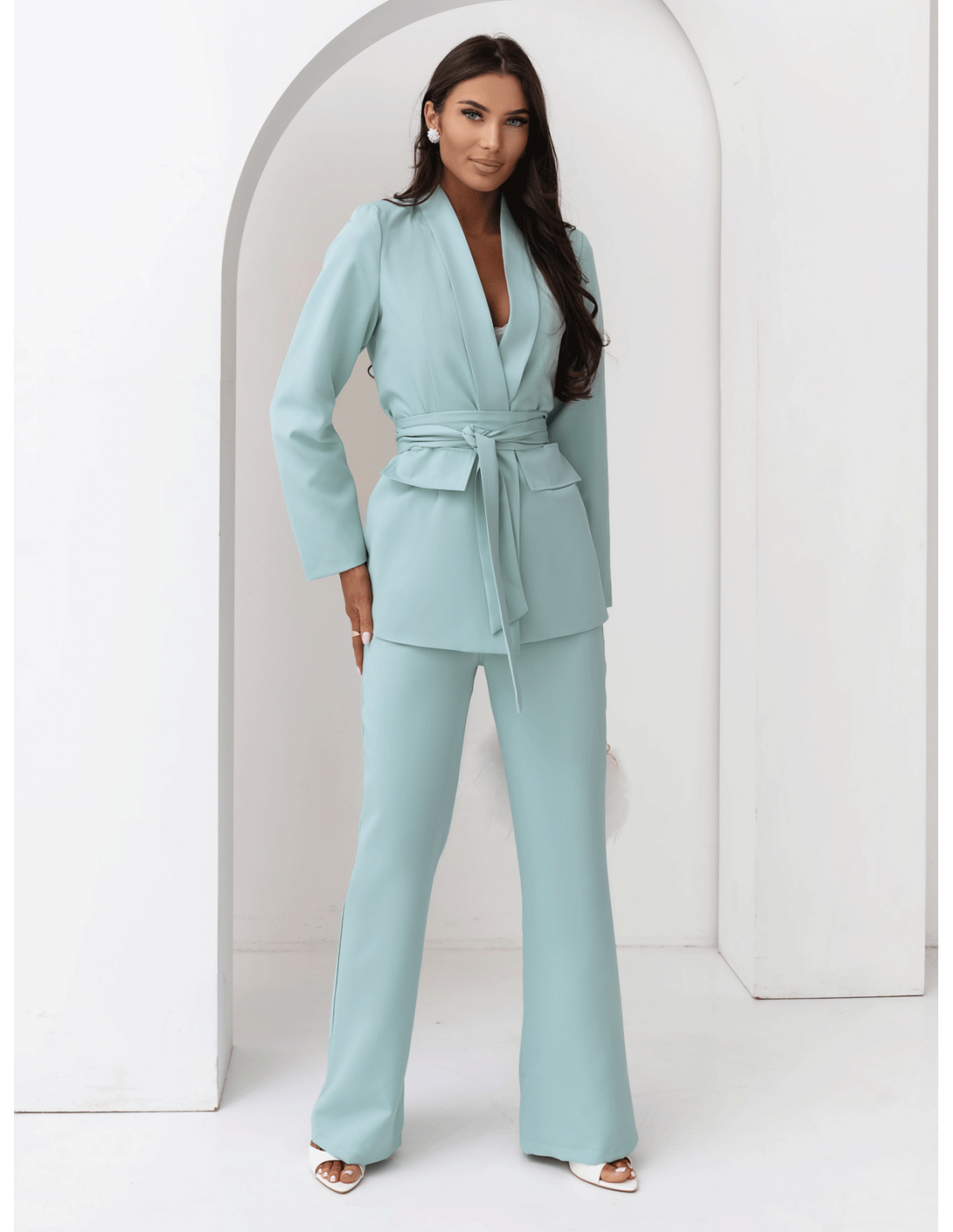 Garnitur w kolorze szałwiowym to świeże spojrzenie na klasyczną elegancją.
