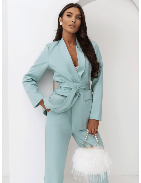 Garnitur marynarka i proste spodnie SENAY - szałwiowy