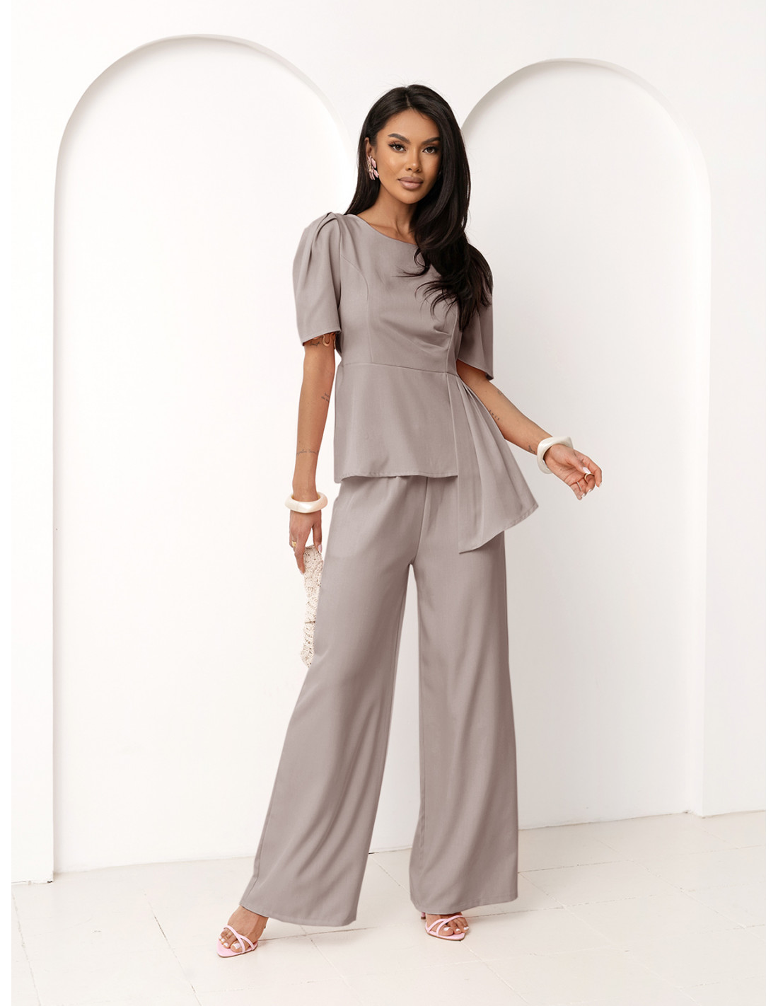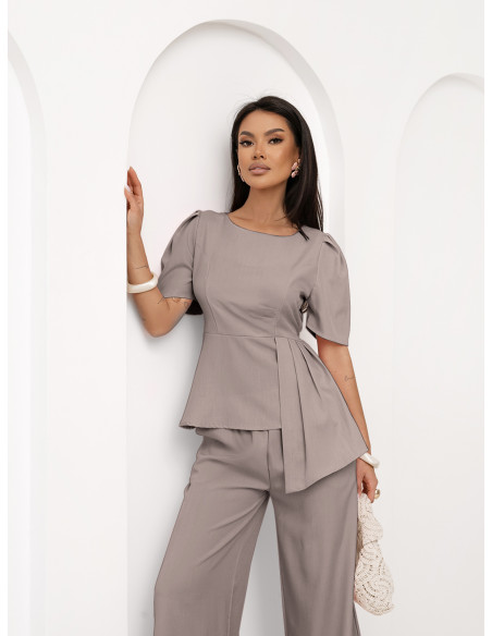 Stylowy komplet z szerokimi spodniami ZEFRA - mocha mousse