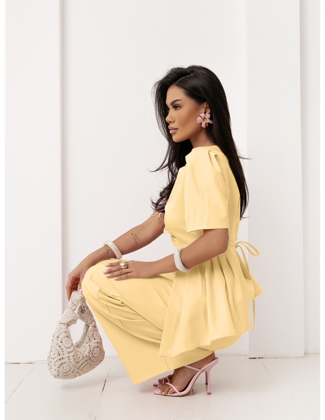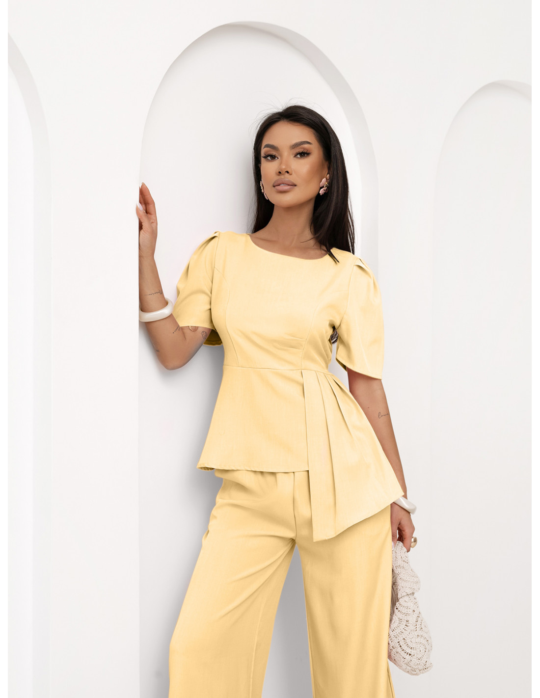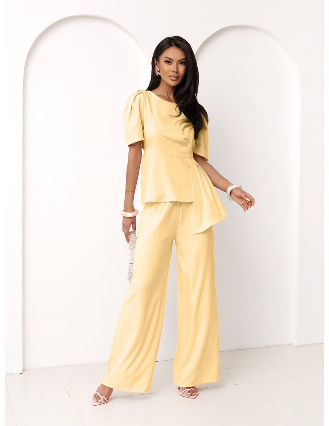 Stylowy komplet z szerokimi spodniami ZEFRA - cytrynowy