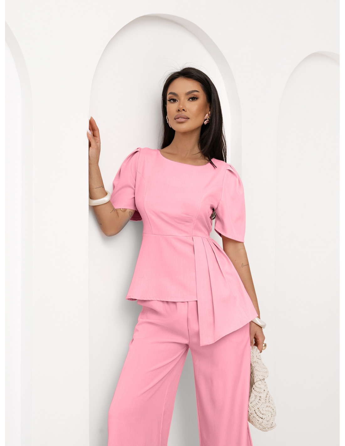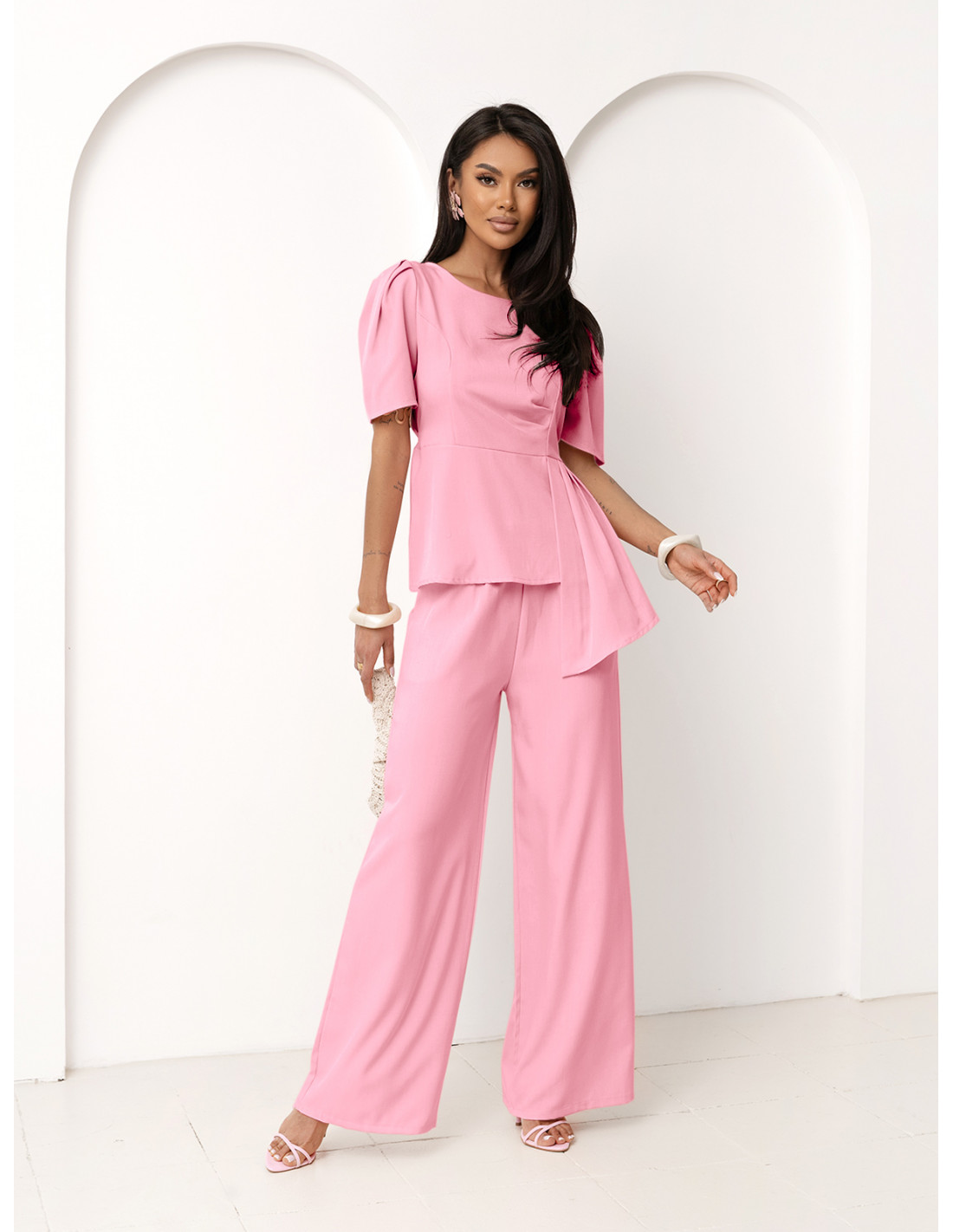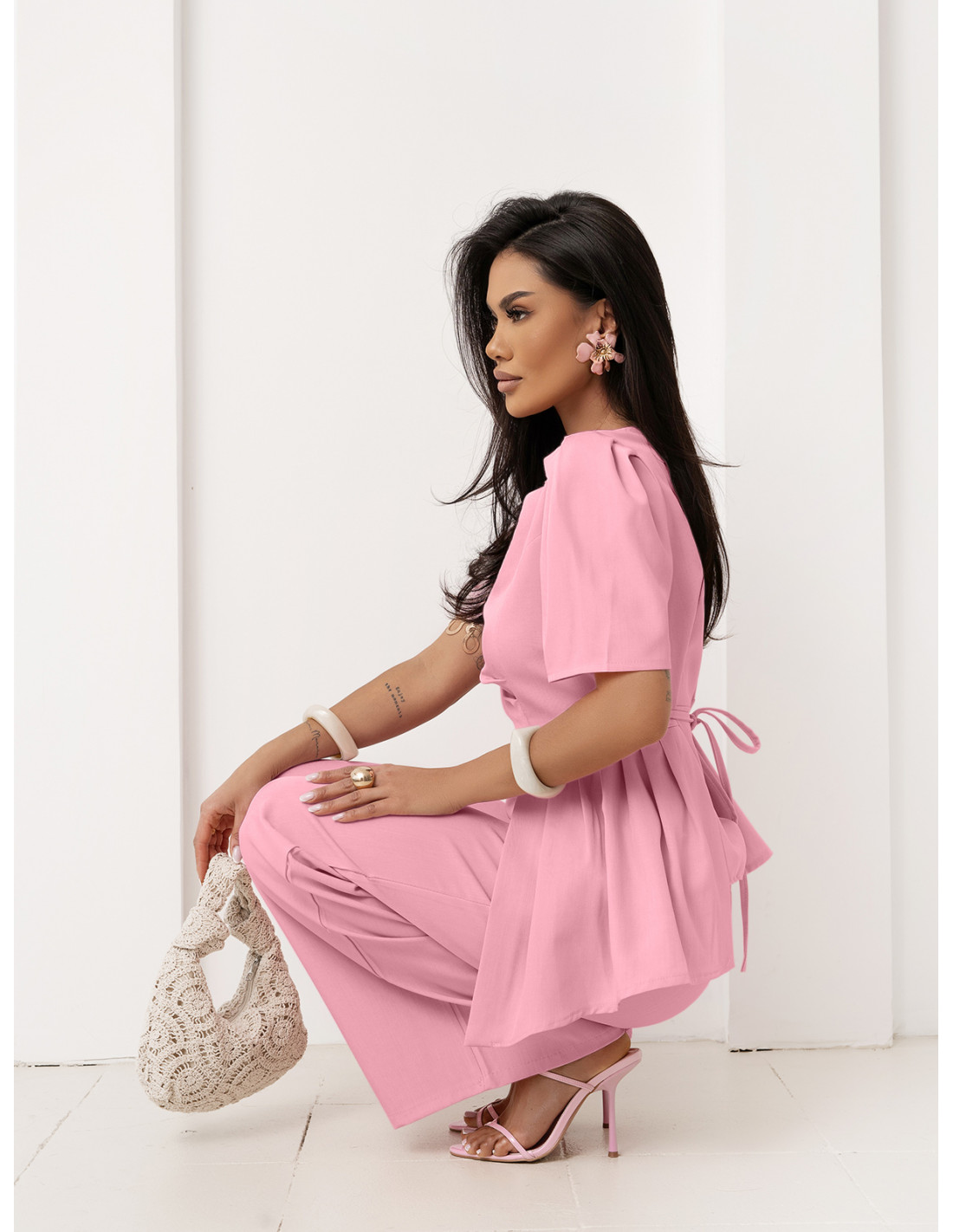 Stylowy komplet z szerokimi spodniami ZEFRA - pudrowy róż