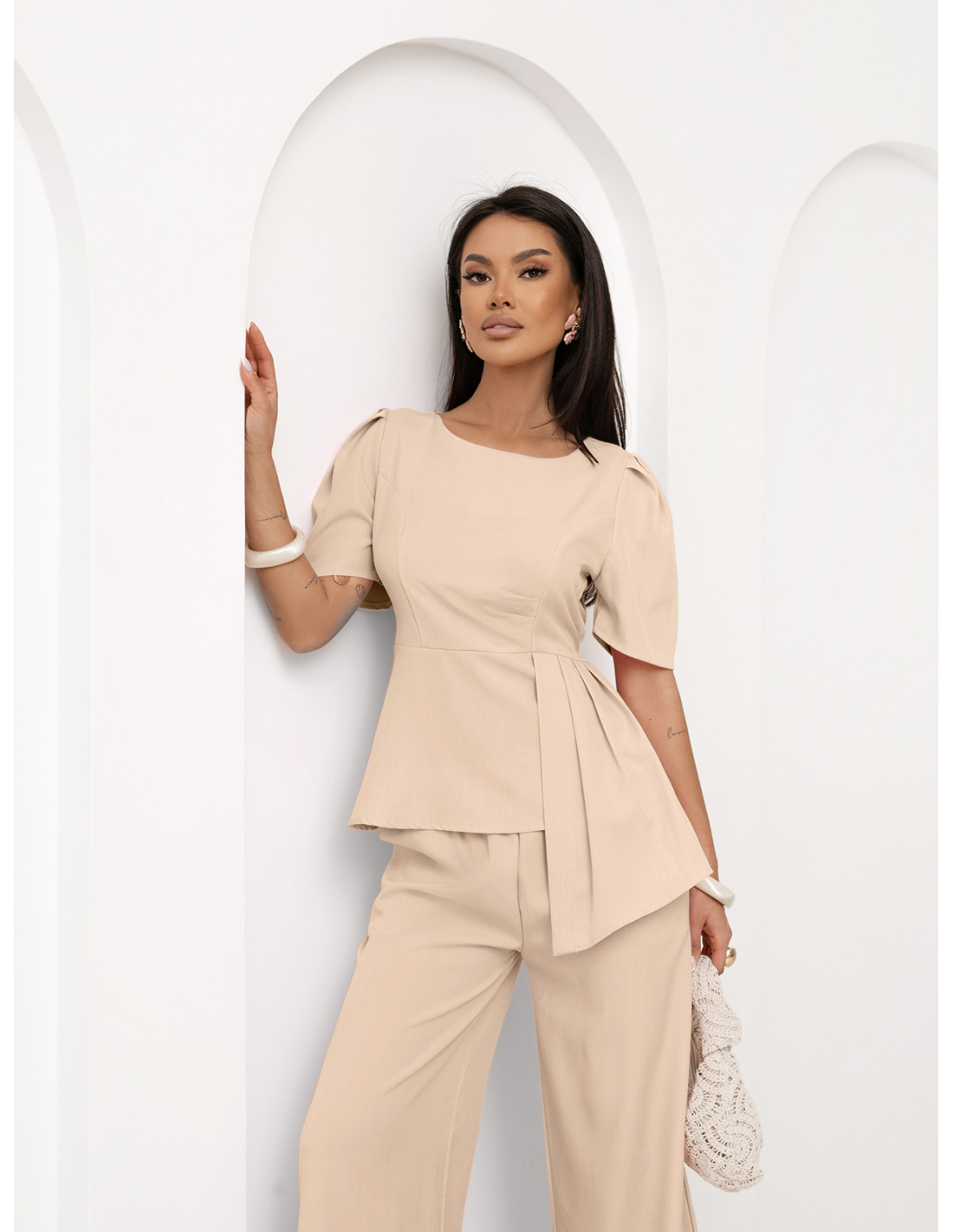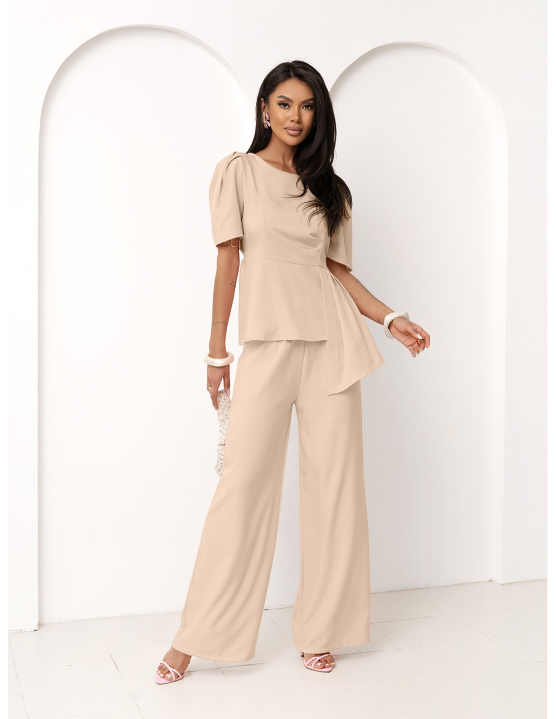 Stylowy komplet z szerokimi spodniami ZEFRA - beżowy