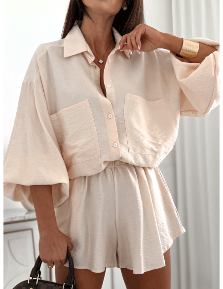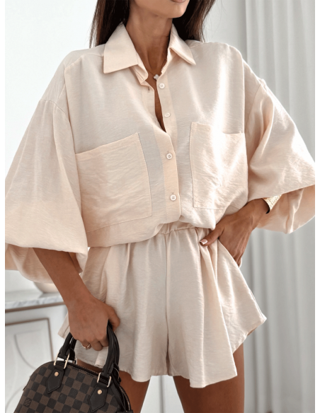 Bawełniany komplet z krótkimi spodenkami CALVINA - beżowy