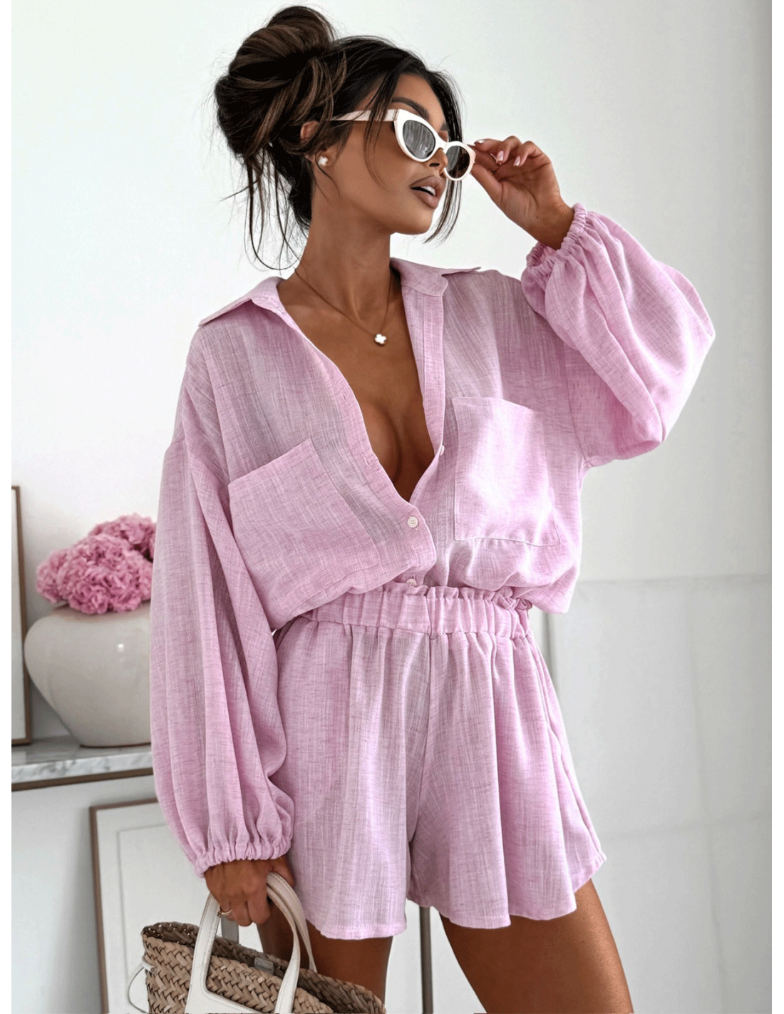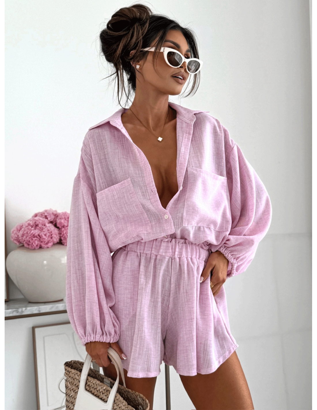 Bawełniany komplet ze spodenkami w kolorze pudrowego różu to kwintesencja kobiecego stylu.